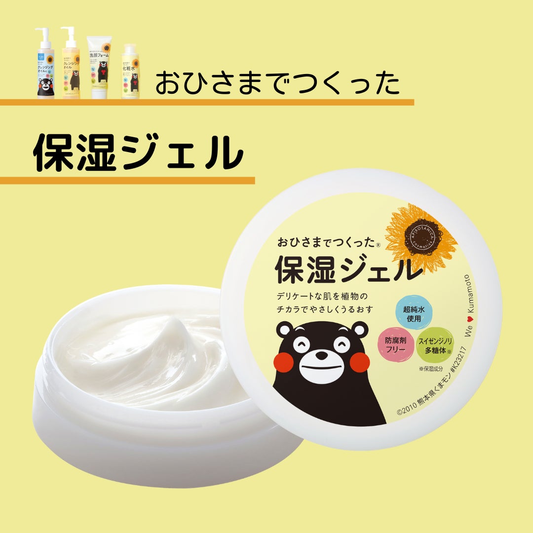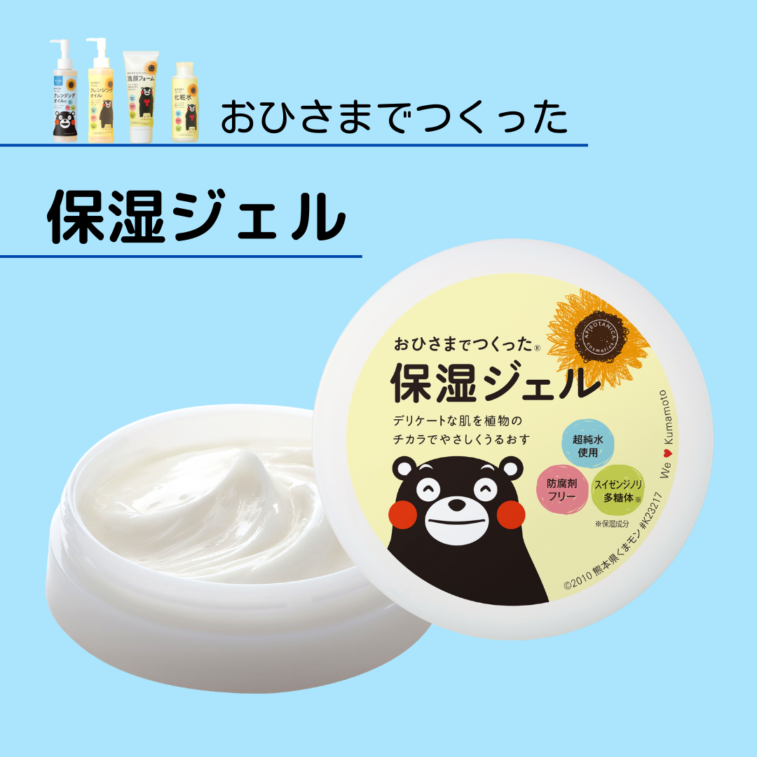 「おひさまでつくった保湿ジェル」は、植物由来多糖体配合で、乾燥で荒れやすい肌にも、ベタつかずやさしくなじみます。
