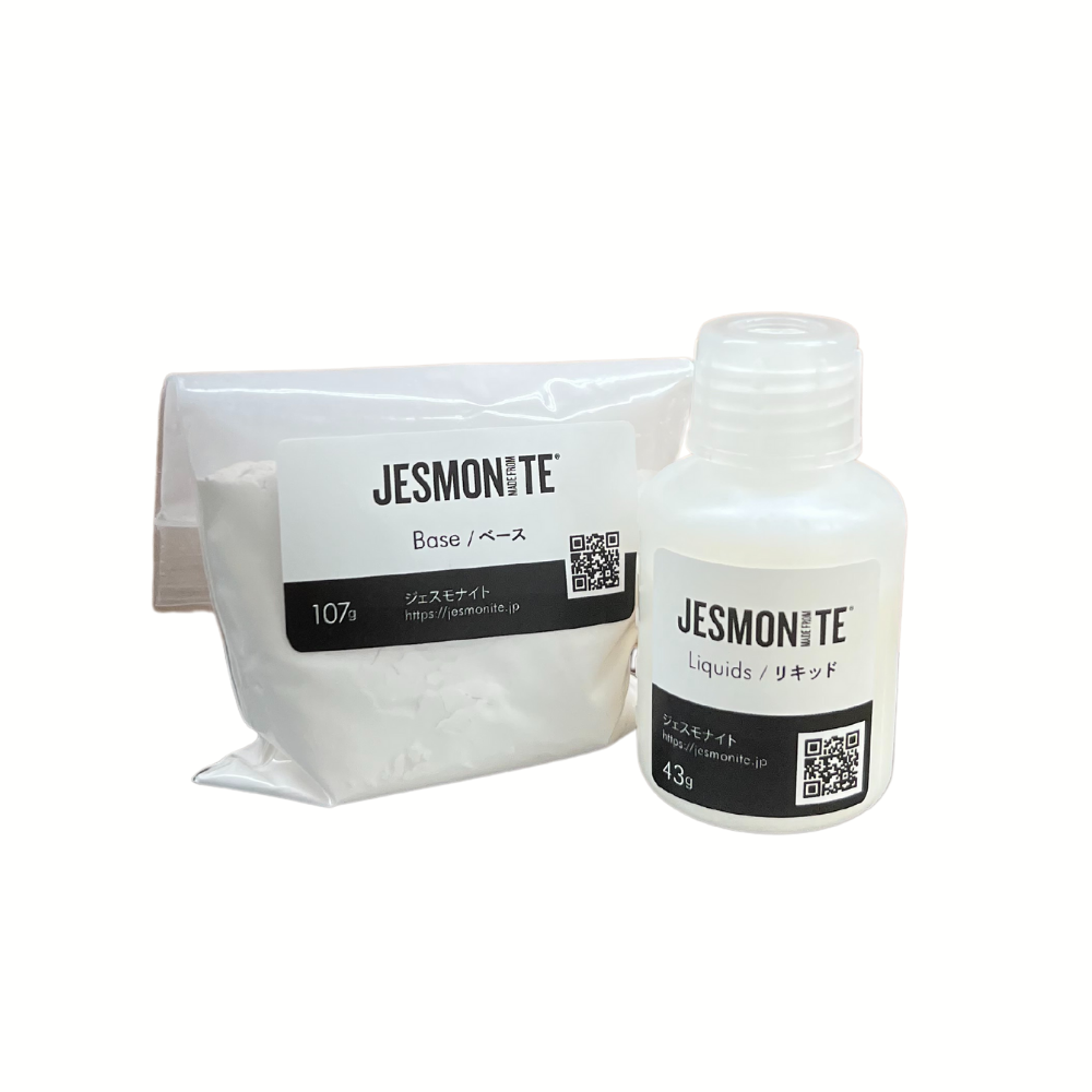 ジェスモナイトは、ヨーロッパ生まれの新しい樹脂です。反応性ミネラルベースと水性アクリル樹脂からなる複合系マテリアルです。