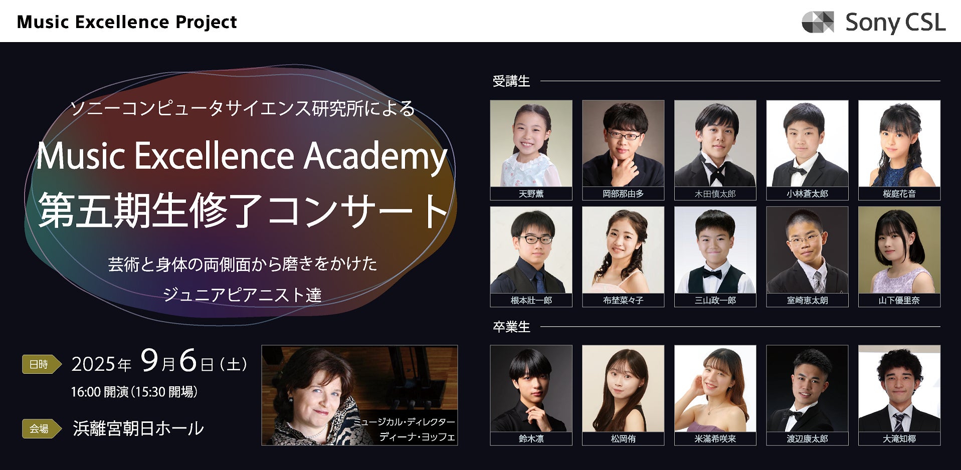 ソニーコンピュータサイエンス研究所主催「Music Excellence Academy第五期生 修了コンサート」を9月6日に開催
