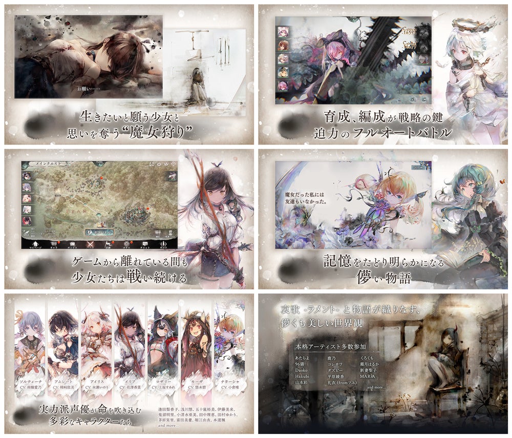 『メメントモリ』は、事前登録受付中のスマートフォン向け新作 RPG です。本作に登場するキャラクターは、過酷な過去や運命を背負う少女たち。彼女たち一人一人にそれぞれのストーリーがあり、その世界観をキャラクターごとに歌唱で表現した“ラメント”には、Daoko、平原綾香など多数の本格派アーティストや声優が参加。心に残るストーリーと“ラメント”、花澤香菜などの実力派声優によるボイスで、キャラクターたちの世界観を存分に体感することができます。