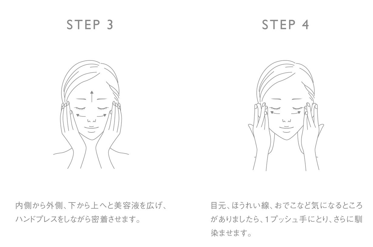 朝と夜、化粧水で肌をととのえた後、丁寧になじませます。
