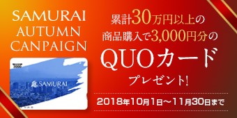 ⇒新規会員登録が完了し、かつ当社商品を累計30万円以上購入頂いたお客様は、①+②(SAMURAIロゴ入りQUOカード3,500円相当)