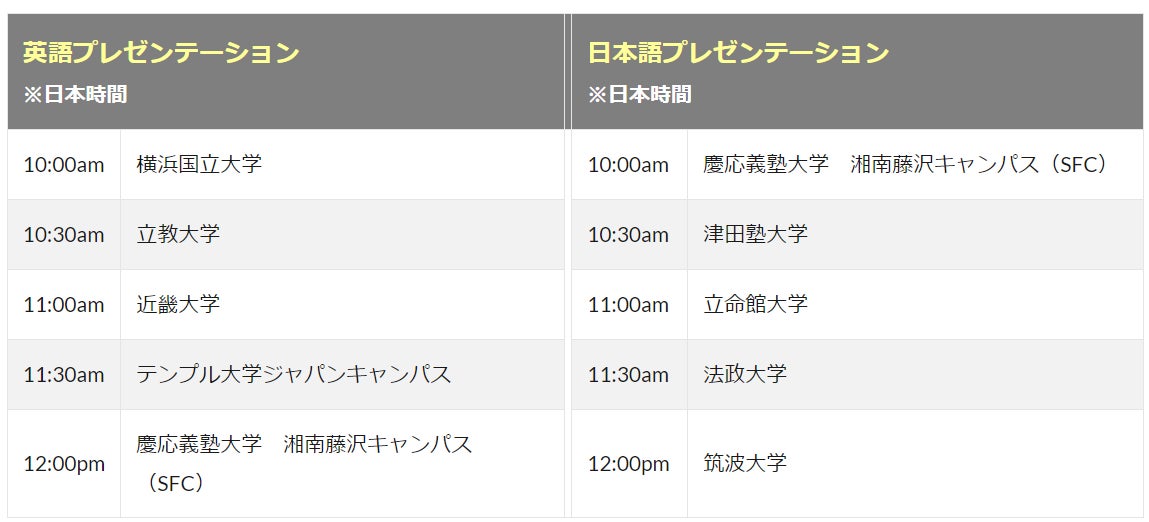 主催するライトハウスは、アメリカで日本語の生活情報誌を発行するなかで、生活に欠かせない情報のひとつとして教育を位置づけています。海外育ち、バイリンガルなどの特徴をもつ学生と、グローバル化に意欲的な日本の大学とが出会える場として「日本の大学 進学フェア」を継続的に開催しています。同フェアは2017年の初回開催から、のべ1万2千人の方が視聴・参加されています。海外に住む学生が受験・就学しやすい制度を設けている、国際化に意欲的な大学が毎回参加しています。