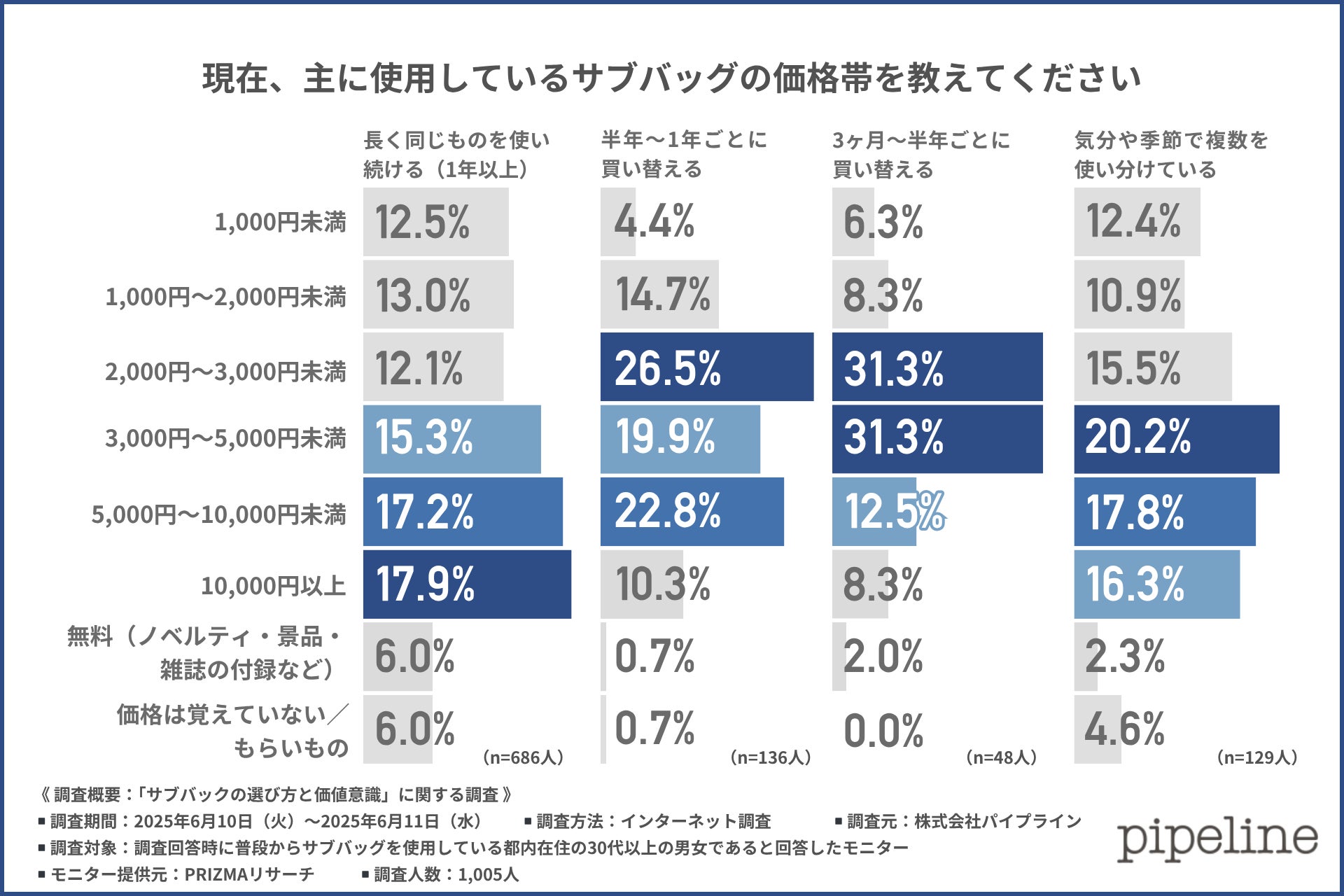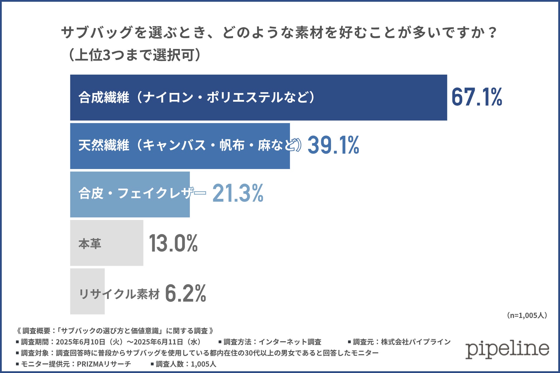 株式会社パイプライン(所在地:東京都中央区、代表取締役:石黒 文浩)は、普段からサブバッグを使用している都内在住の30代以上の男女を対象に、「サブバッグの選び方と価値意識」に関する調査を実施しました。