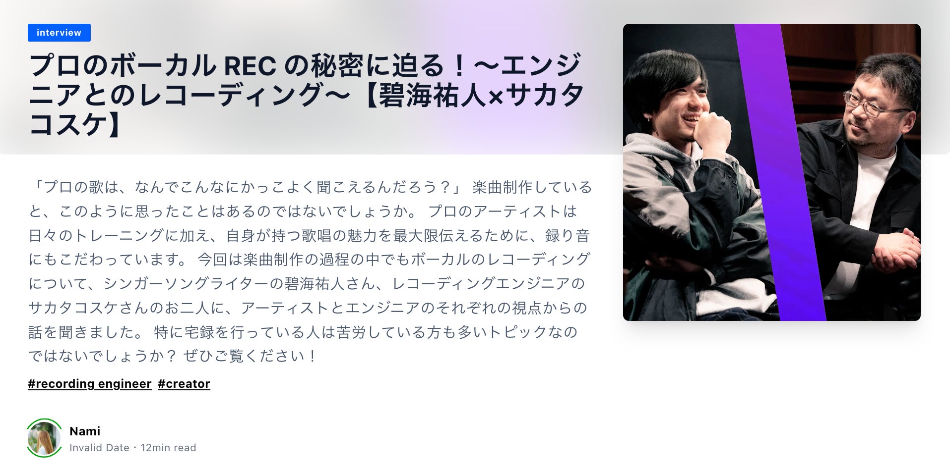 ここでしか聞けない、ボーカル REC の秘密を紐解く!インタビュー記事を公開