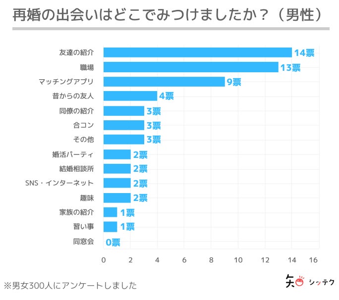 再婚の出会いは、職場・友達の紹介の次に、男女共にマッチングアプリでの出会いが3番目に多い