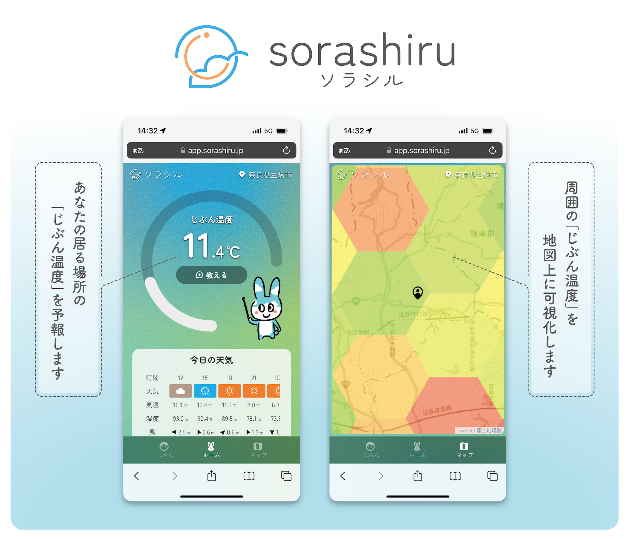 ・体感温度をsorashiruで継続してお知らせすることで、自分の感覚に合った「じぶん温度」が分かるようになる
