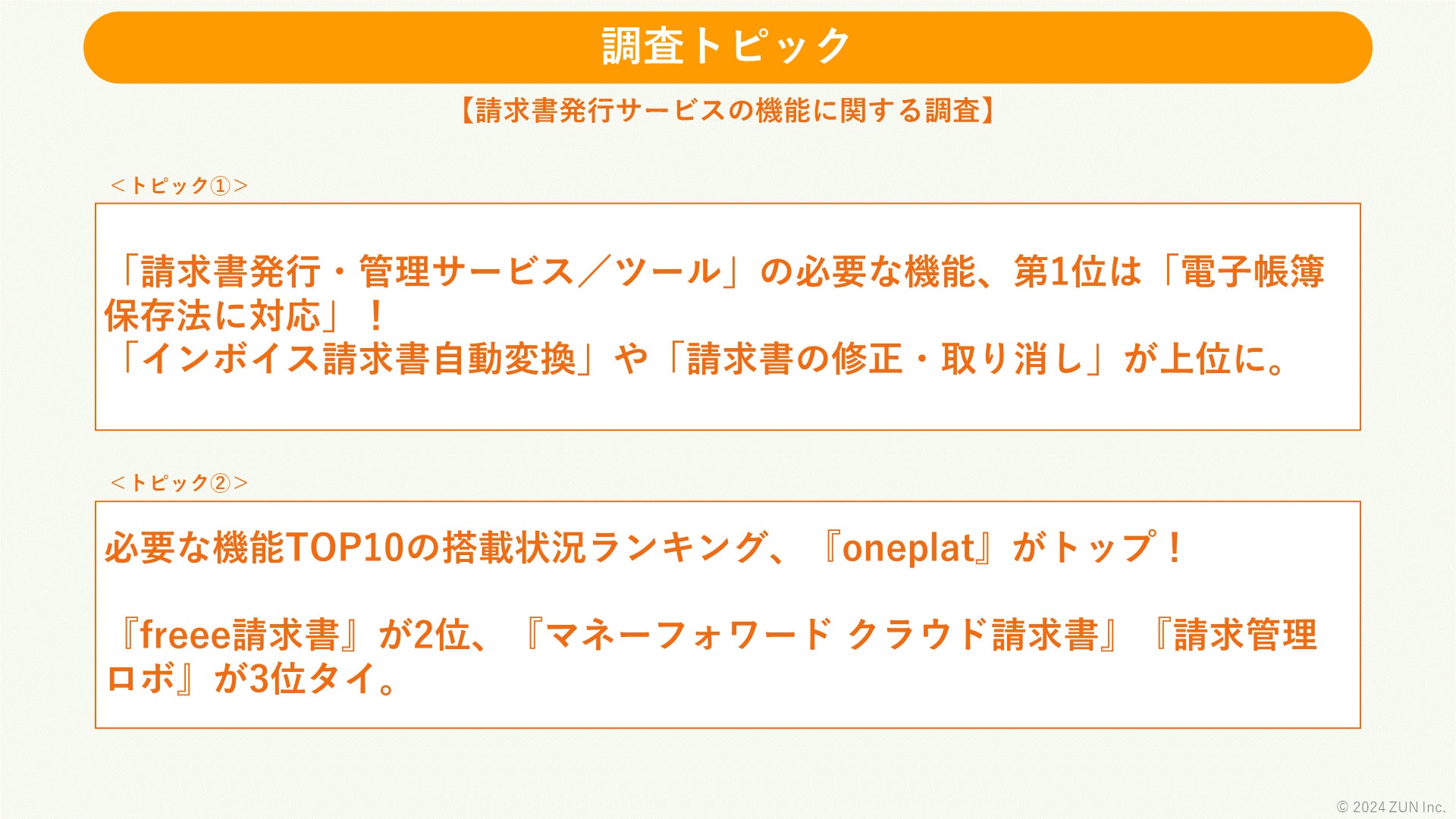 【請求書発行サービスの「機能」に関する調査】必要な機能(TOP10)の搭載ランキング1位は「oneplat」!