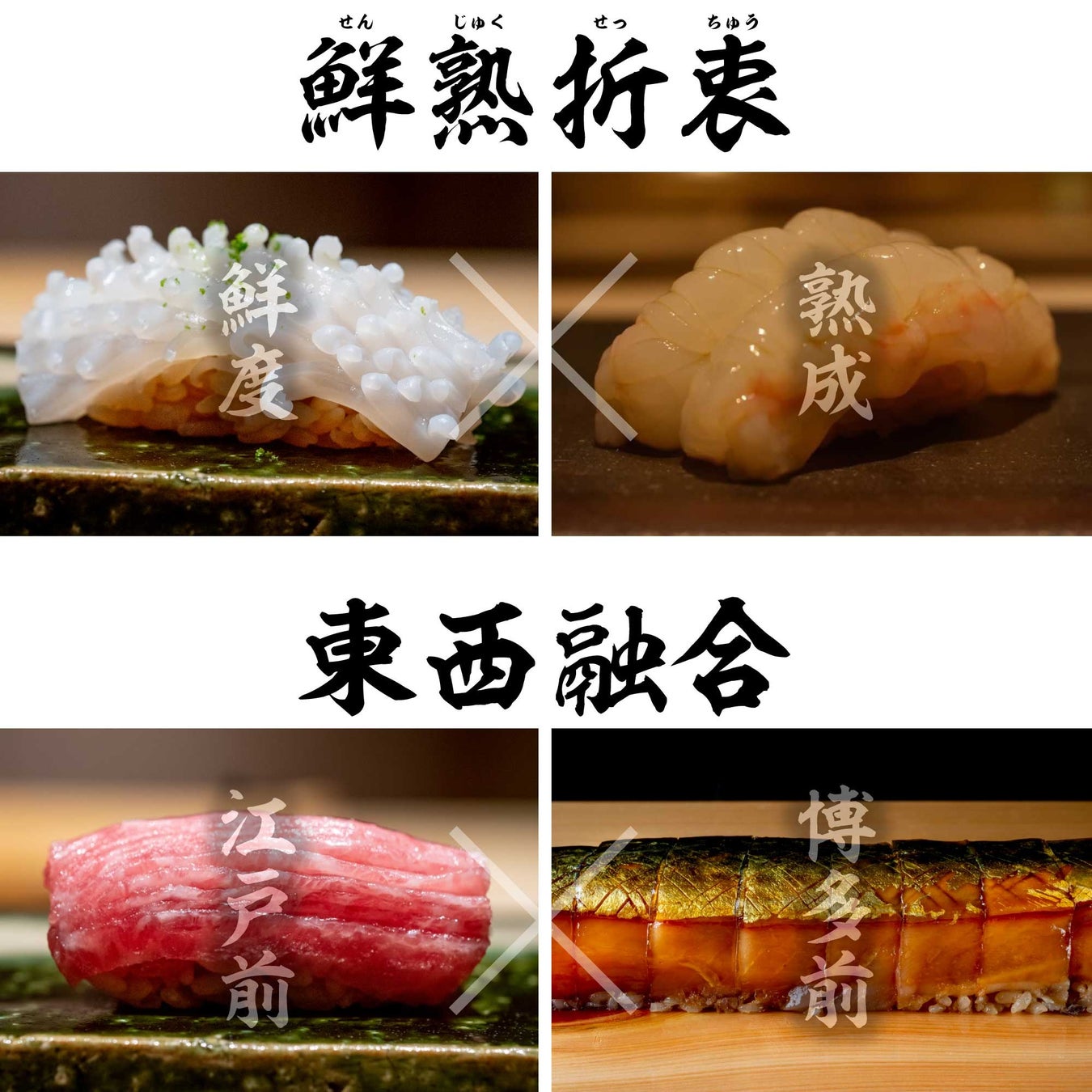150年先の鮨の原型を目指した鮮熟折衷(せんじゅくせっちゅう)、東西融合。
