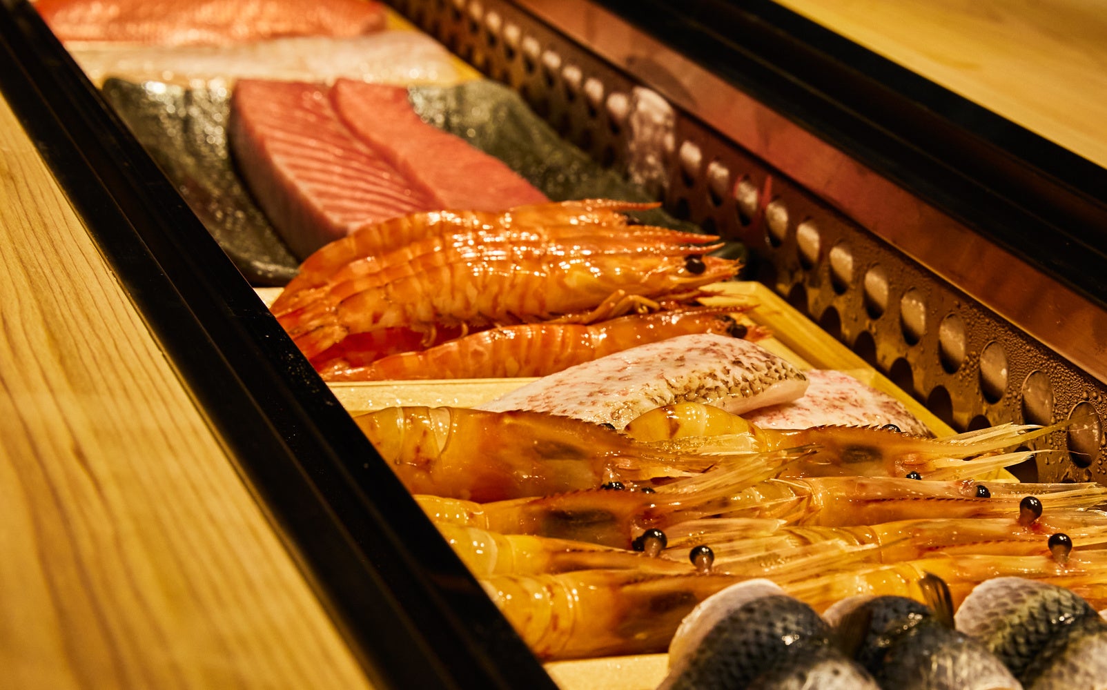 その日のオススメの魚介が並ぶネタケースを見ながら、職人との会話を愉しんでほしい