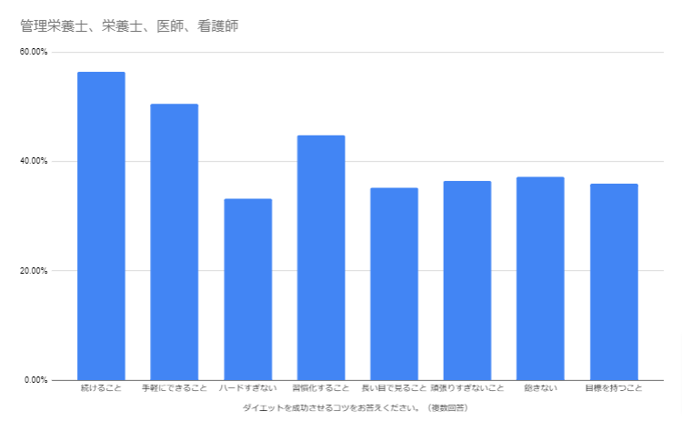 ・専門家のダイエット成功者のコツは「続けること」56.42%