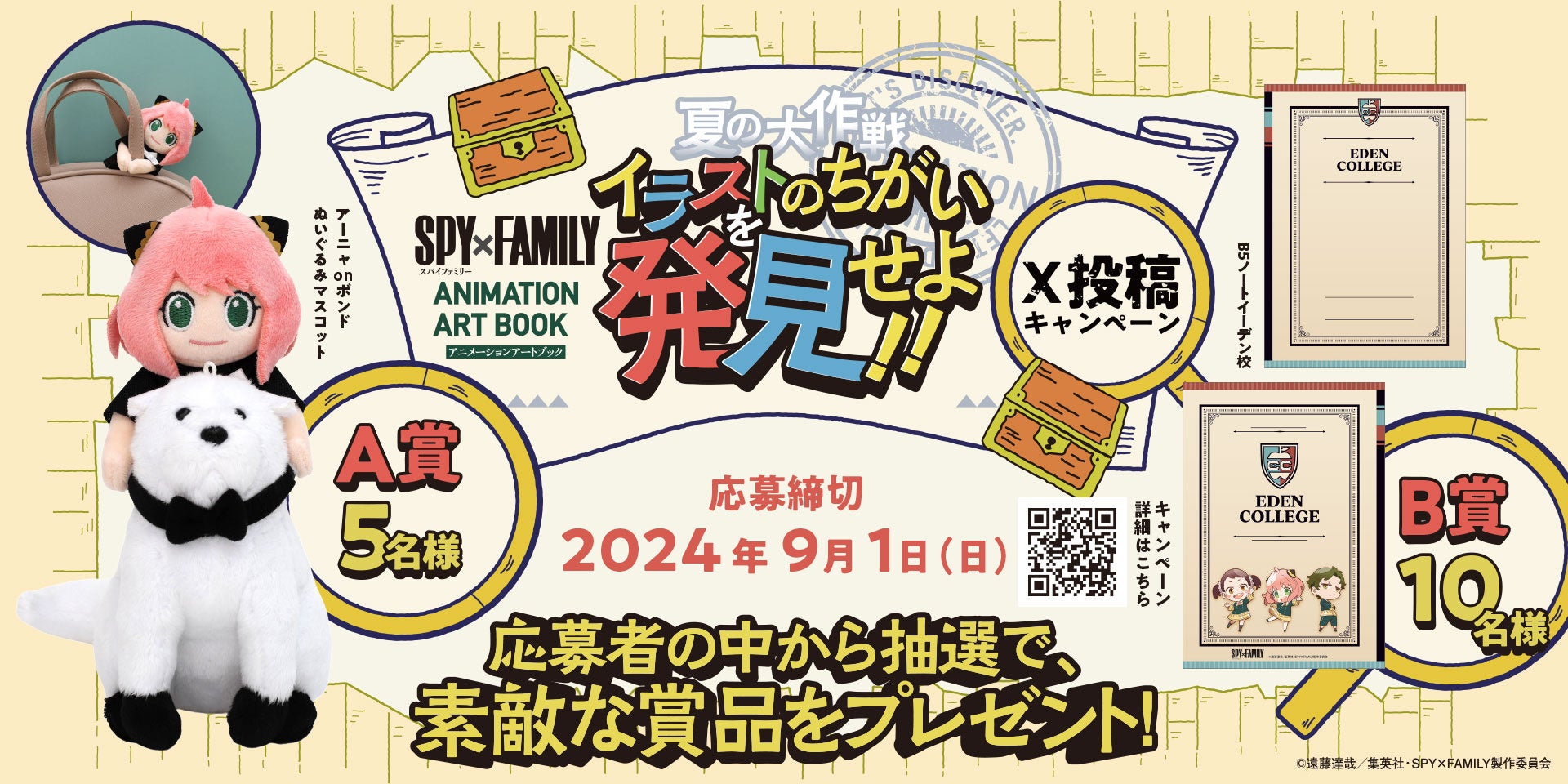 名称 :X投稿キャンペーン「SPY×FAMILY ANIMATION ART BOOK 夏の大作戦 イラストのちがいを発見せよ!!」