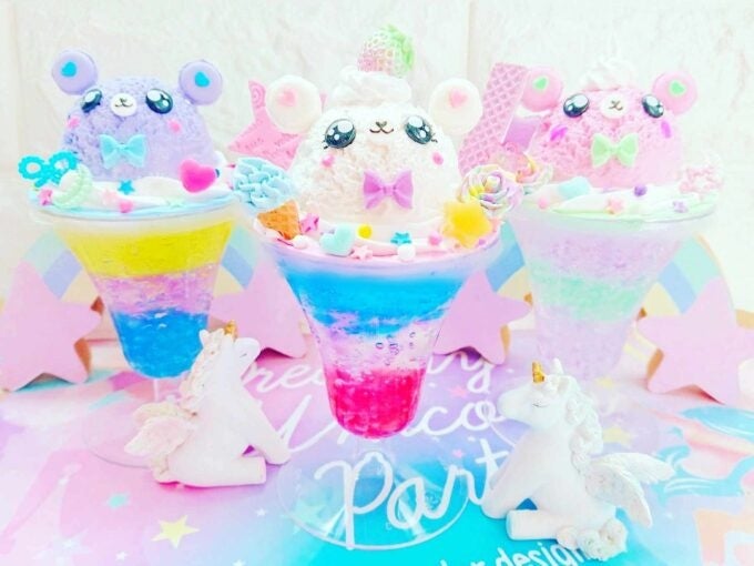 8色の消臭ゼリーとかわいいくまアイスで、キラキラなお部屋の消臭剤を作ります。