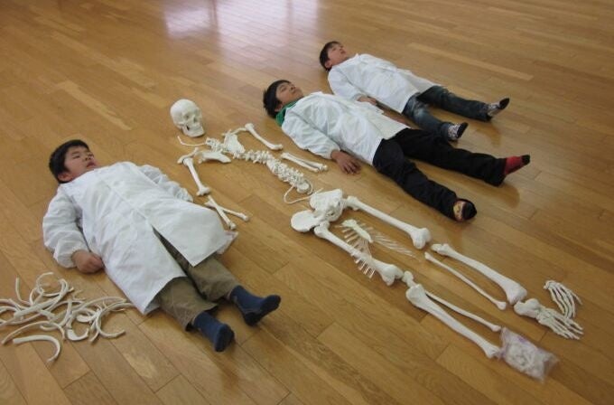 「等身大のガイコツ」をみんなで組み立てながら、支える・守る・曲げるといった体の仕組みを学びます。