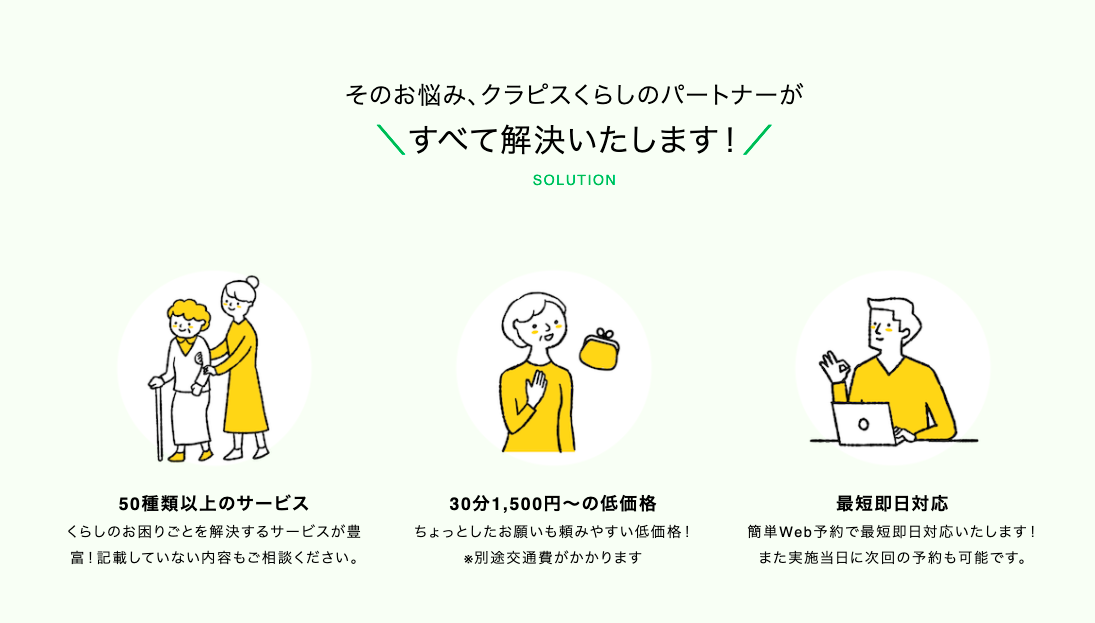 「くらしのパートナー」(https://kurashi.curapis.com/)は、シニアの生活支援サービスです。