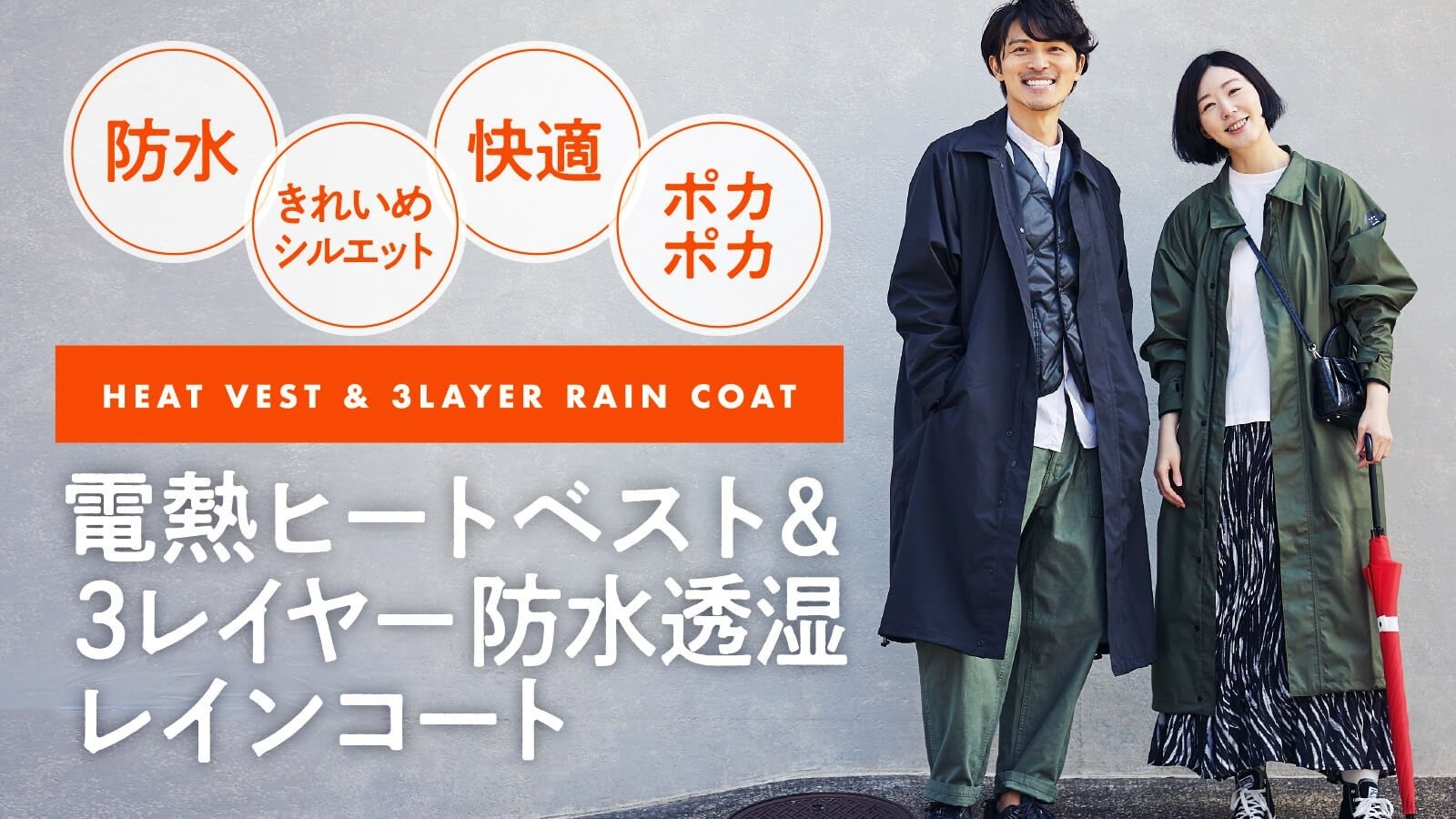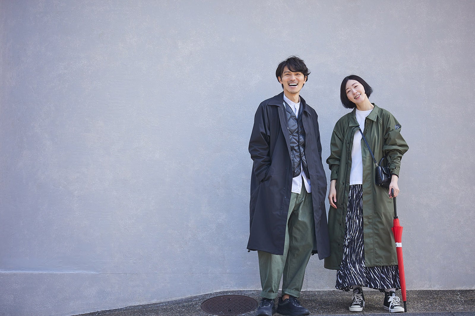雨具のプロフェッショナル、カジメイクのノウハウと最新技術を結集し、毎日を豊かにしてくれる理想のコートを考えた結果生まれたのが「オールシーズン ステンカラーコート & 高機能 電熱防寒ベスト」です。