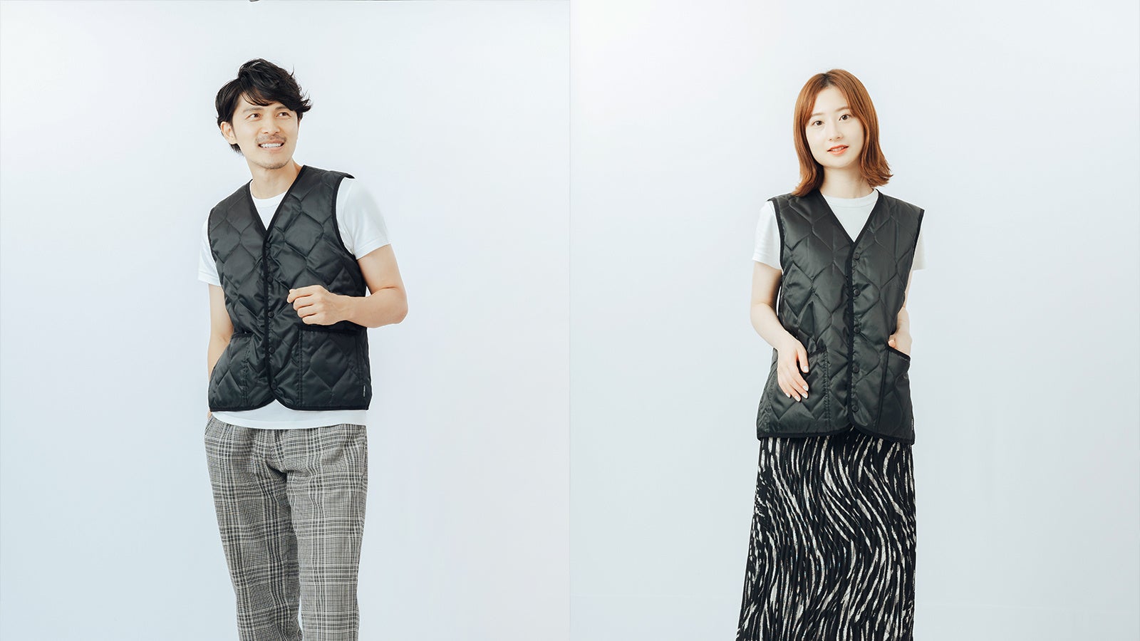 特徴1:薄手なのに暖かいから着ぶくれしない「電熱式防寒ベスト」で冬でもスタイリッシュにポカポカ