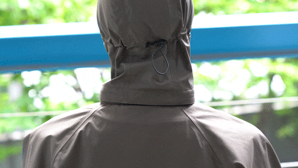 さらに外からの雨を防ぎながら同時に衣服内の湿気(水蒸気)を外へ排出する「防水透湿生地」なので、汗による衣服内の蒸れを軽減し、衣服内を快適に。その蒸れにくさの指数である透湿性は驚異の「透湿度25,000g/㎡・24hr」を実現しています。