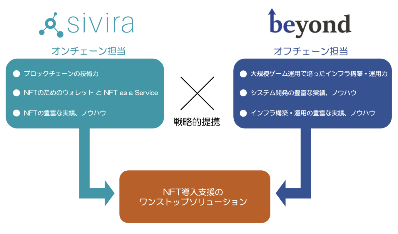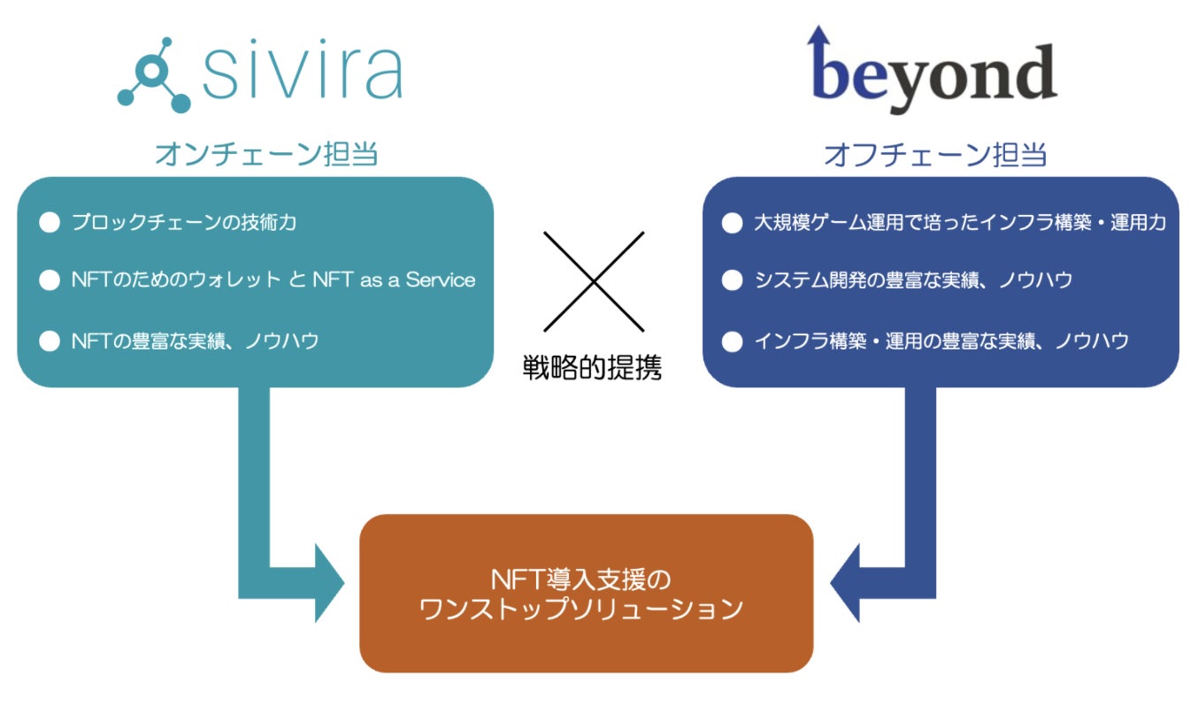 シビラ株式会社(本社:大阪市北区,代表:藤井隆嗣,以下「シビラ」)と株式会社ビヨンド(本社:大阪市浪速区、代表:原岡 昌寛,以下「ビヨンド」)は、NFTを活用したサービスのヒアリング・要件定義から開発・運用保守までをワンストップで支援するソリューションを共同で提供いたします。