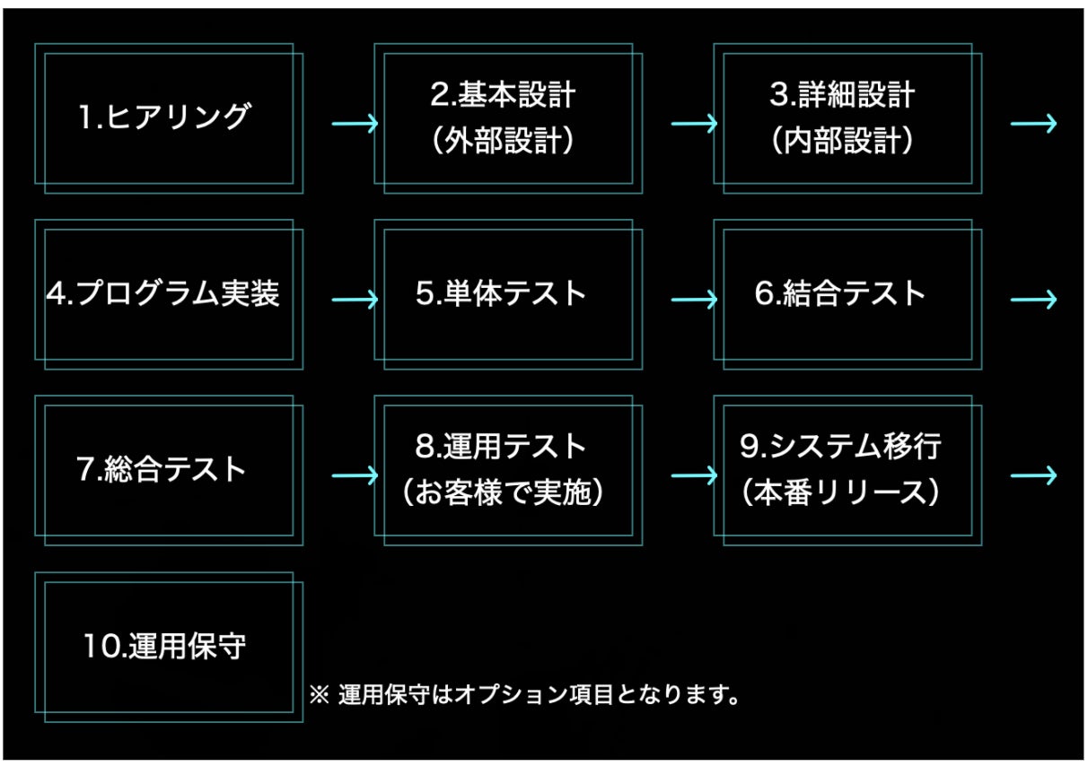 NFTを検討したいフェーズからのヒアリングにはじまり、要件定義・基本設計・開発、サービスリリース後の保守・運用までしっかりとサポートいたします。