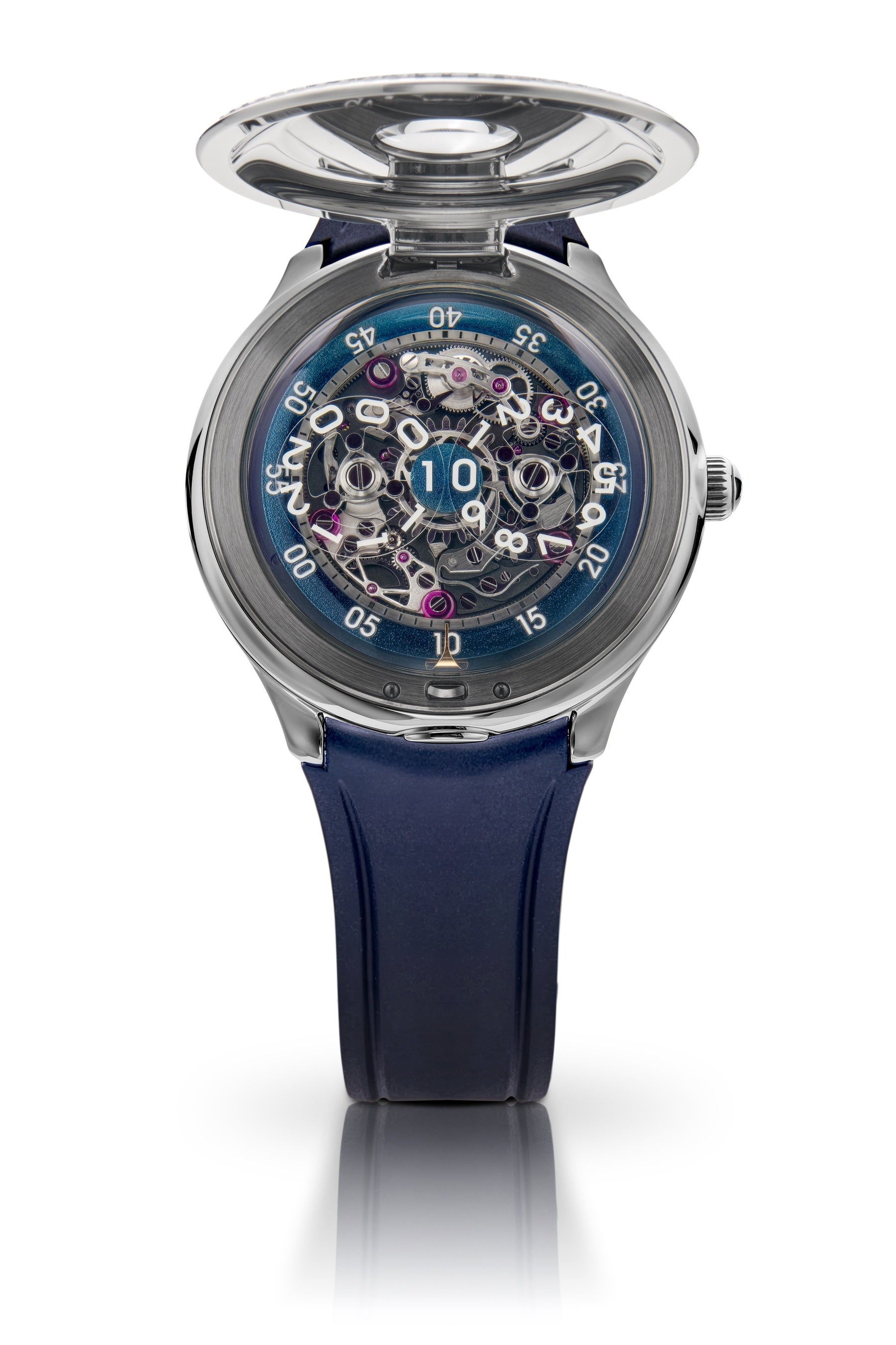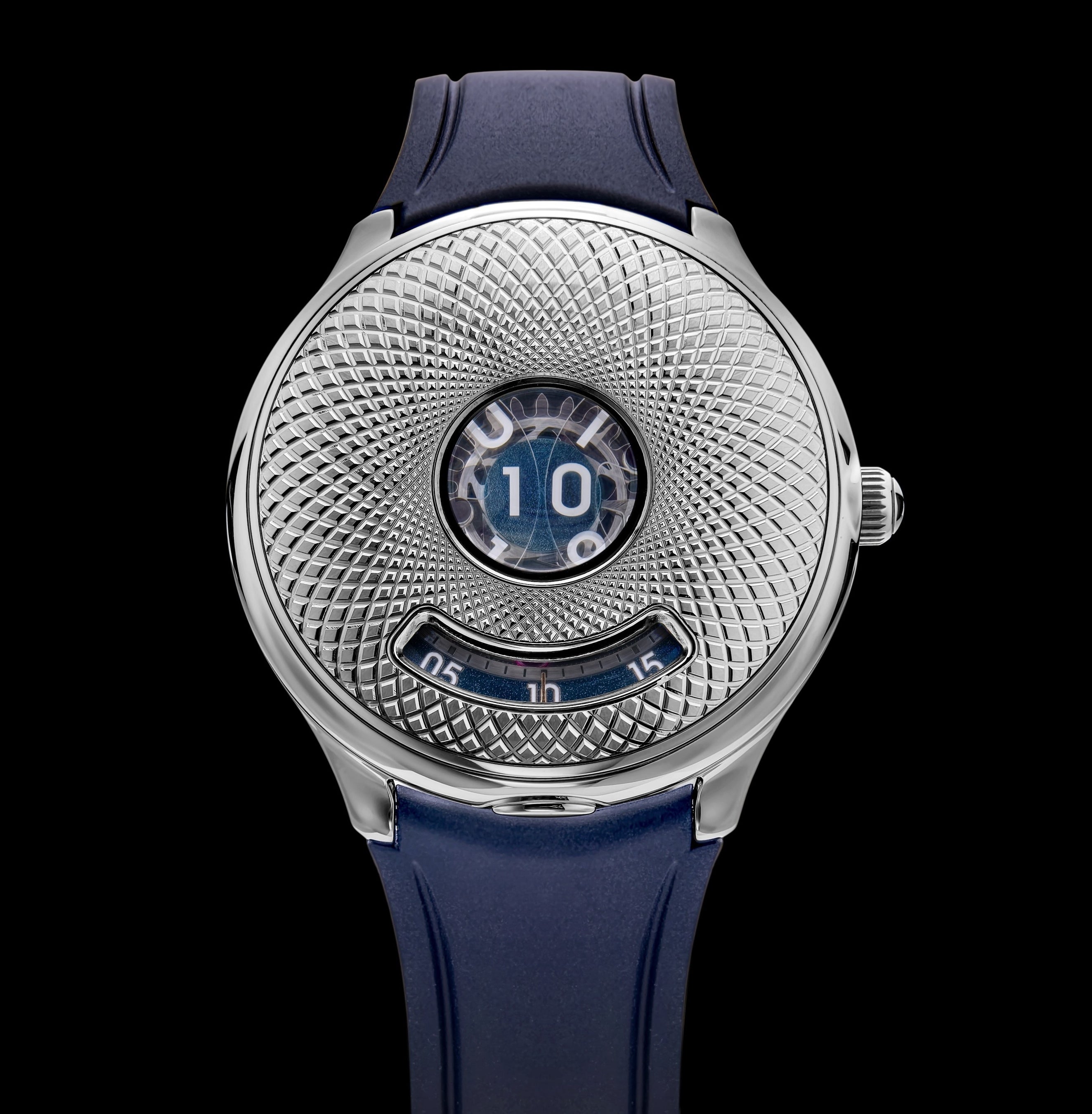 ・新開発キャリバー10.1:24時間制ジャンピングアワー(2枚のサファイア・アワーディスク)+外周ディスクによるトレーリング・ミニッツ表示