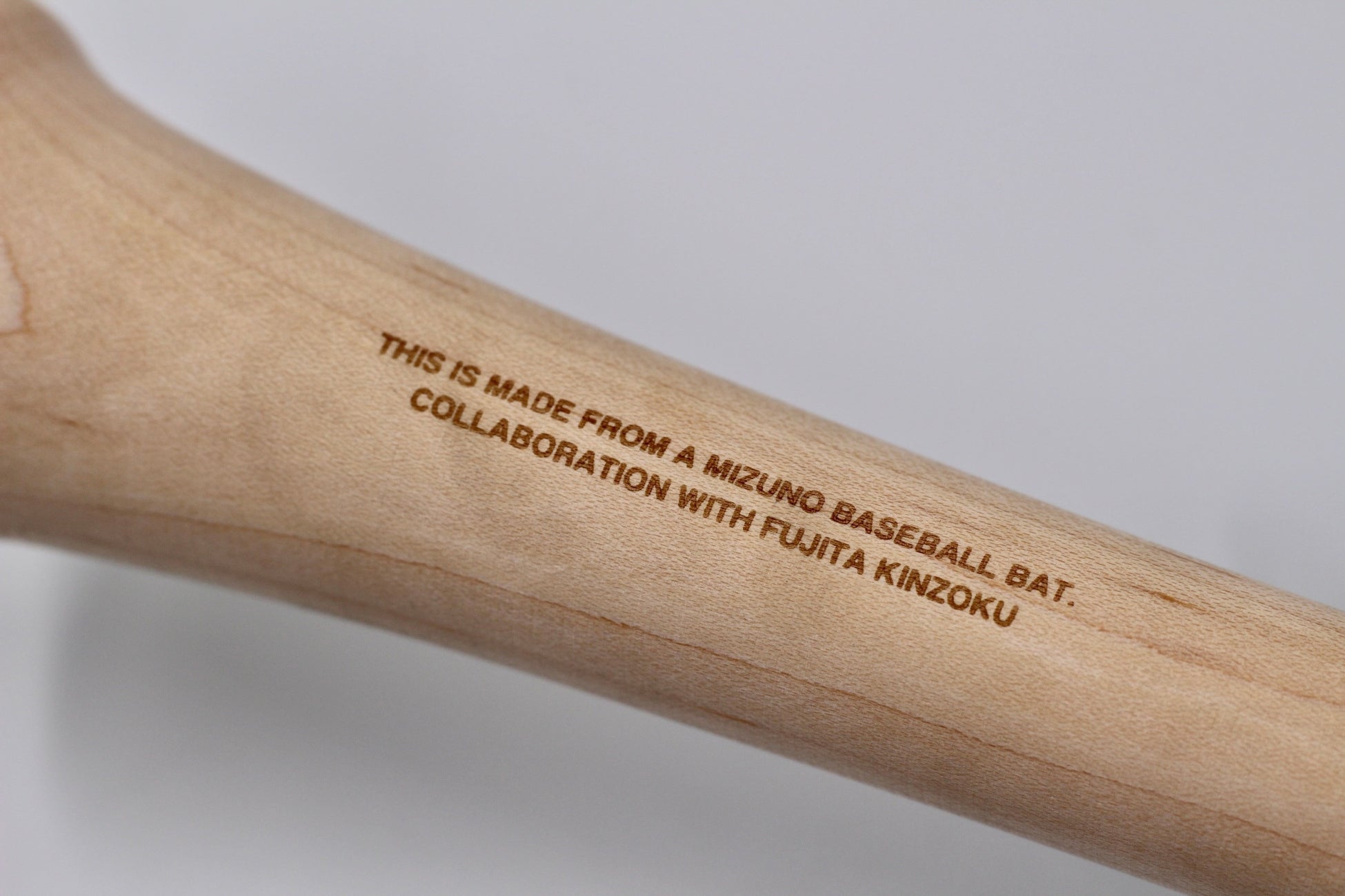 「SWING PAN」シリーズは、この販売できなくなってしまった木製バットを使用しています。木材の種類はメイプルで、耐久性に優れ、経年変化を楽しむことができる材木です。