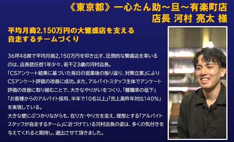 居酒屋甲⼦園は、外⾷産業の活性化と飲⾷業界に携る⽅々がより誇りを持てるように、居酒屋を夢を語る場所に、⼦供たちの憧れの職業にするという想いで19年間歩んできました。