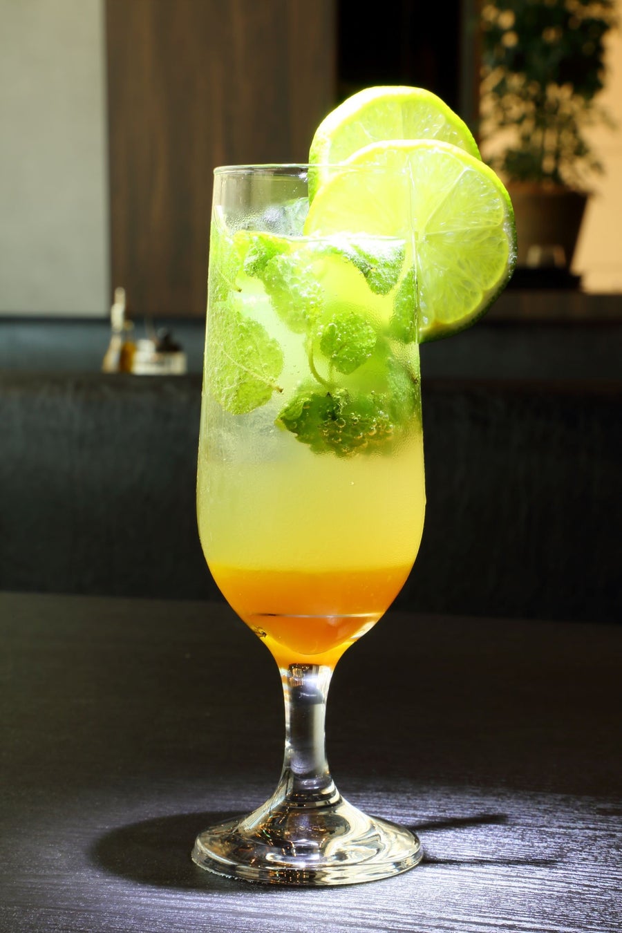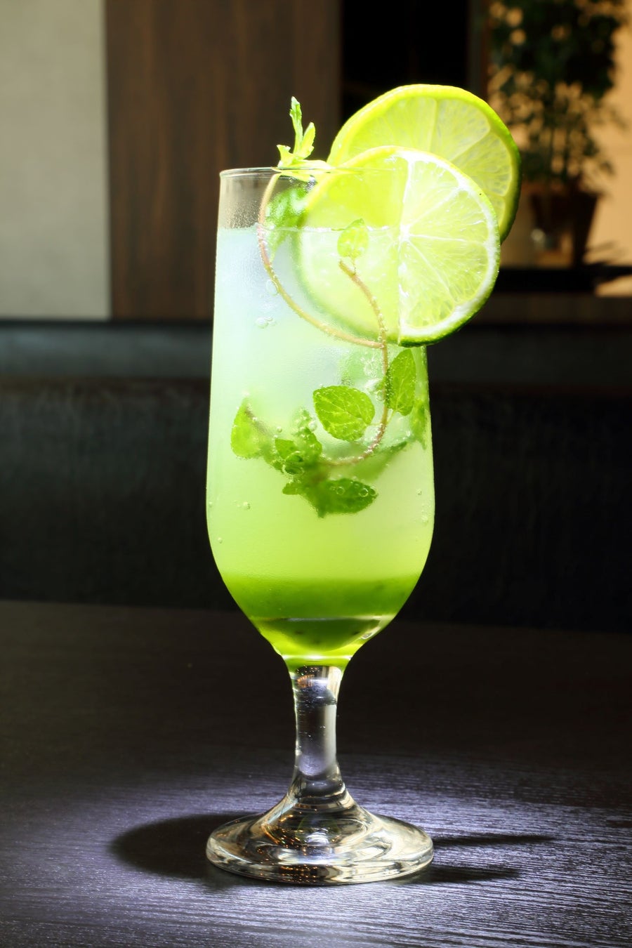 キウイのヴァージンモヒート。キウイの甘味にライムの酸味が味わいを整えています。