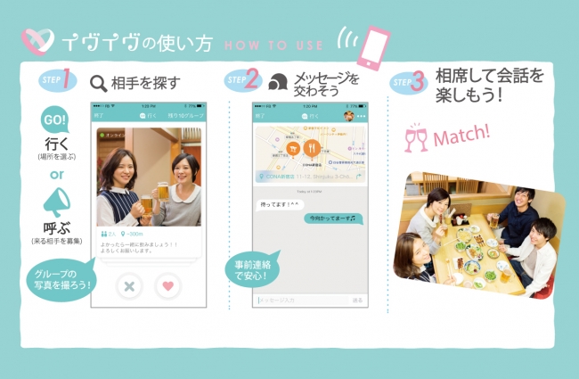株式会社マーケットドライブからリリースされた無料オンライン相席アプリ『イヴイヴ』は、毎週金曜日夜8時から9時の間に渋谷区で使えて、アプリを使い始めてからたったの15分で相席ができる、日本ではじめての即席型相席アプリです。従来のマッチングアプリのような、何日間もやりとりを重ねてから実際に会う日を決める…といった面倒な手間はかかりません。アプリ上でそのとき近くにいた相手が表示されるので、相手のいるお店を確認し、「今から10分ほどでお店に向かいます。」といったメッセージを送るだけで、すぐに相席できることで話題となっています。「イヴイヴタイム」は、『イヴイヴ』のユーザーが対象の、エリア・参加人数・年齢などを限定した毎週違った内容で行うイベントの名称です。イベント参加者を限定することで、アプリが利用できる時間帯を毎週金曜日夜8時から9時の1時間の間に、その週の「イヴイヴタイム」参加者同士のマッチングがよりしやすくなるように、と企画されたこのイベント。早くもその第1弾が開催され、大きな反響を呼びました!