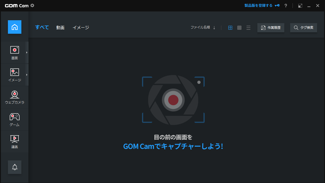 ・ゲームも、ウェブカメラも、PC画面上のすべてが録画できます。 録画から編集までまとめて解決。 動画編集機能も搭載されており簡単な編集も可能。 保存したファイルはファイルごとにダグを付けて検索・管理しやすくなります。 GOM Camはエラー修正や新機能搭載を通し、日々アップグレードしていきます。 無料版に挿入されていたウォーターマーク(透かし)を削除し、より使いやすくなりました。ぜひお気軽にお試しください!!