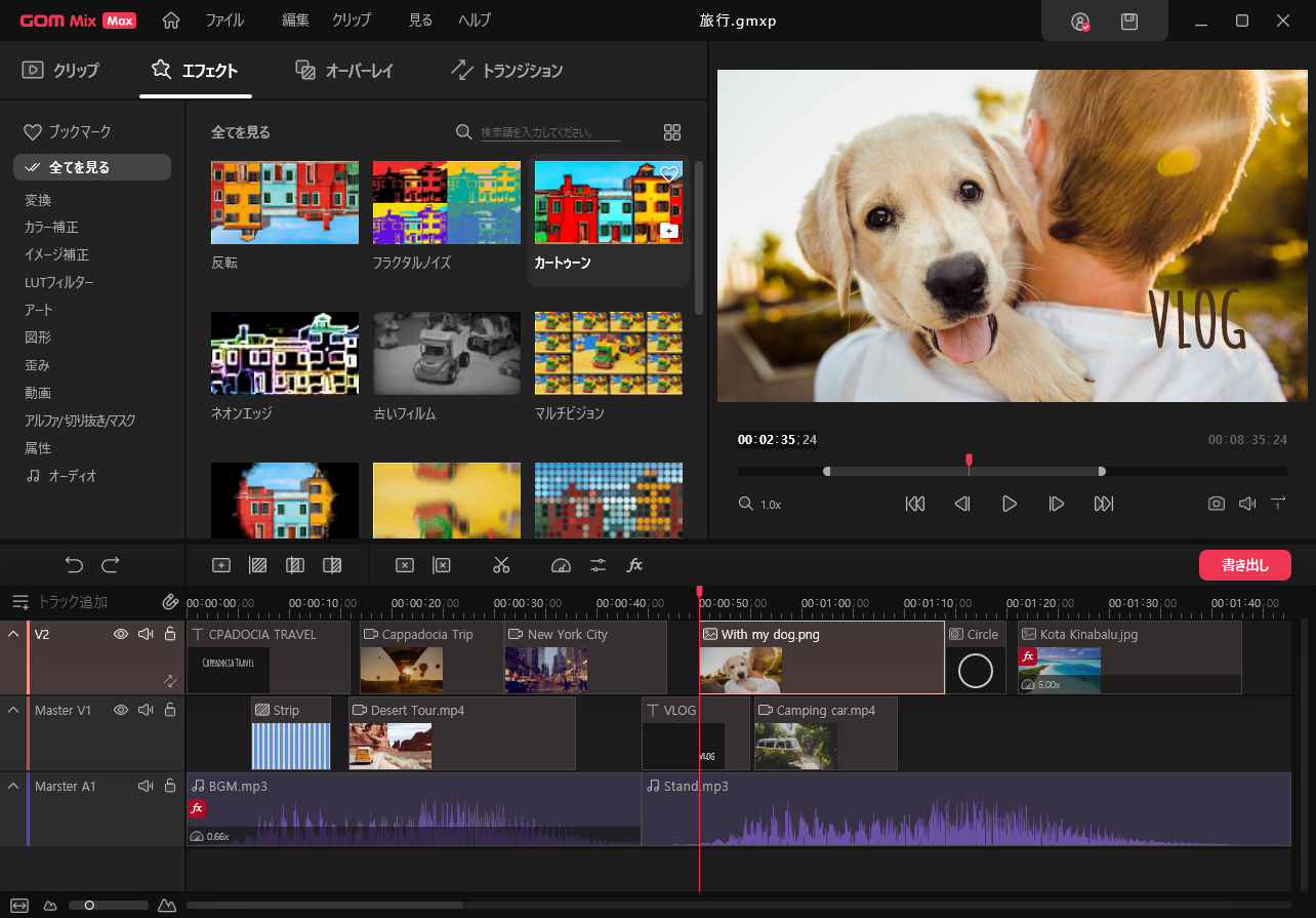 ・動画制作クリエイターが推薦する、 簡単かつ質の高い動画編集ソフト 「GOM Mix Max(ゴムミックスマックス)」は、動画編集に必要な音源、フォント、画像など 編集より時間がかかる編集用素材を無料で提供しています。また、PIP、画面分割、クロマキー合成など様々な機能で想像を実装し、自分の思い通りに編集することができます。動画制作クリエイターを目指す方やリーズナブルな価格で簡単なUI・UXお探しの方のための動画編集ソフトです。