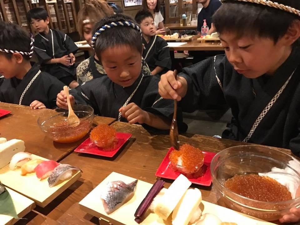 活きたお魚からお寿司を握って、提供するまでの流れを子供達が体験できるプログラム。