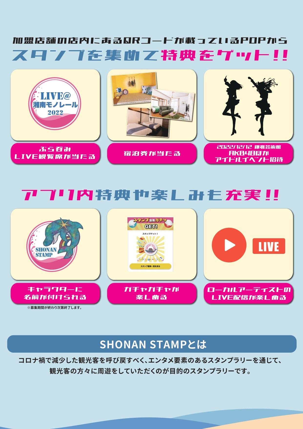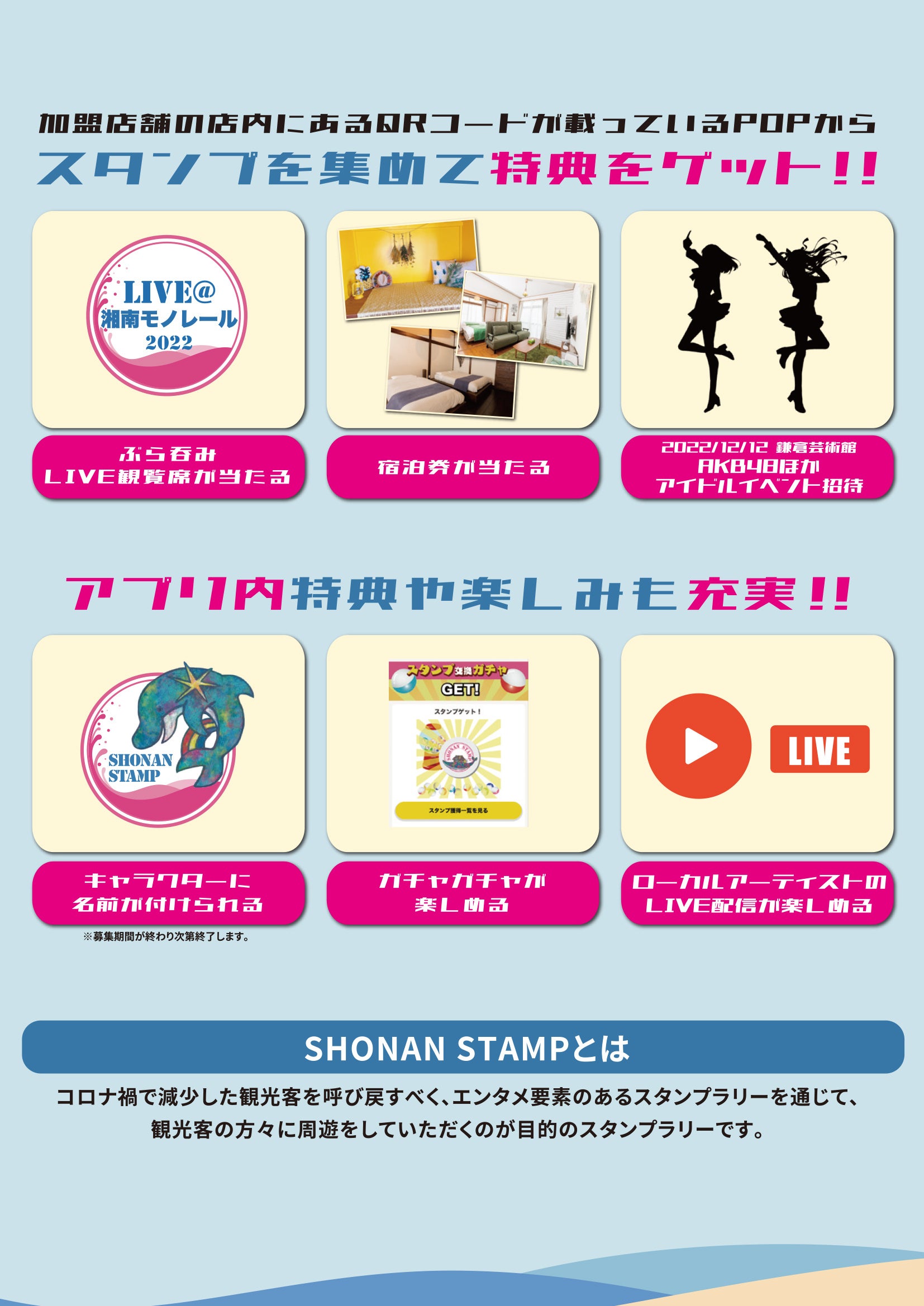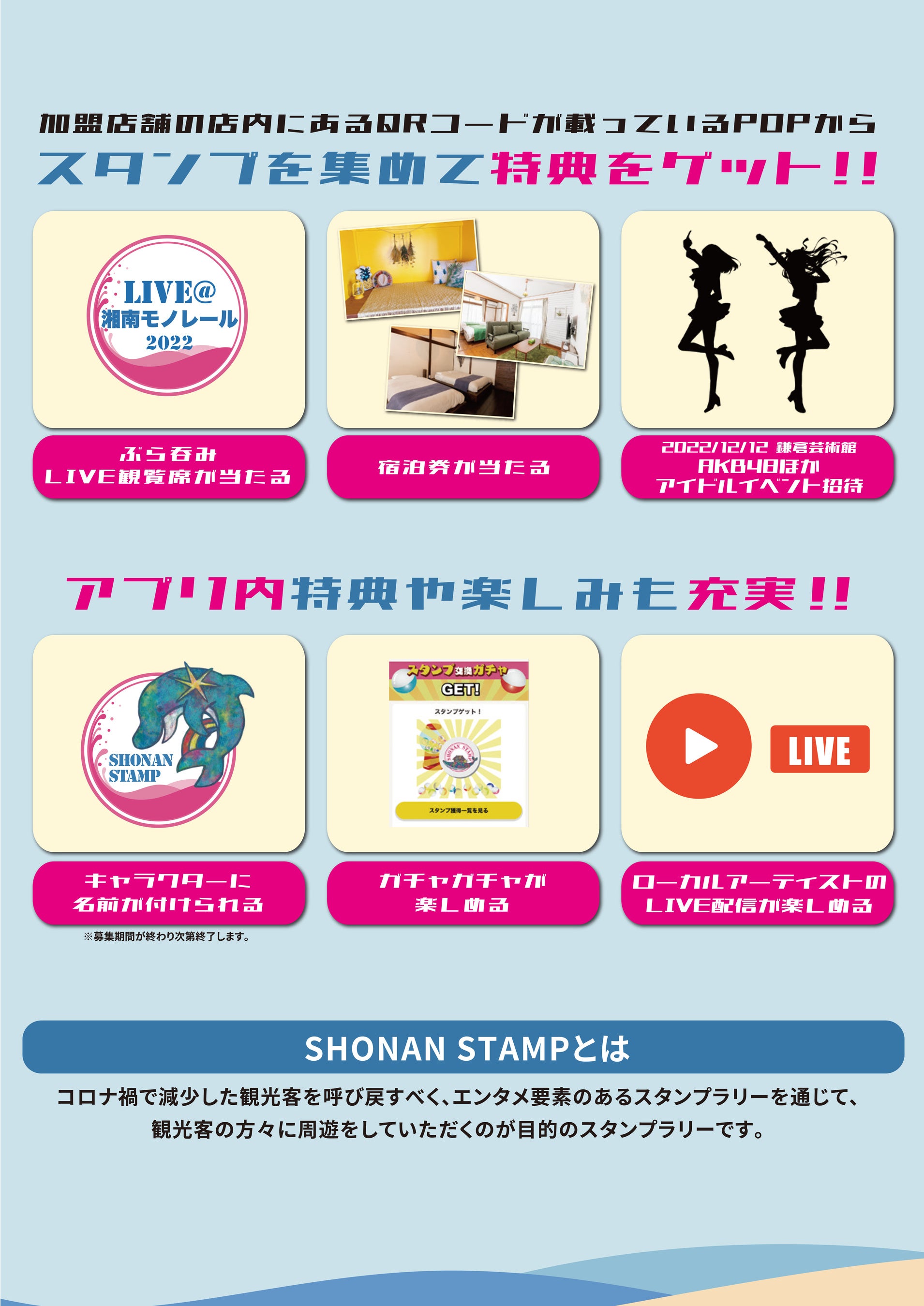 SHONAN STAMPの加盟店になっている店舗も多いので店舗巡りをしながらSHONAN STAMPのスタンプを集めて豪華景品に応募しよう!!