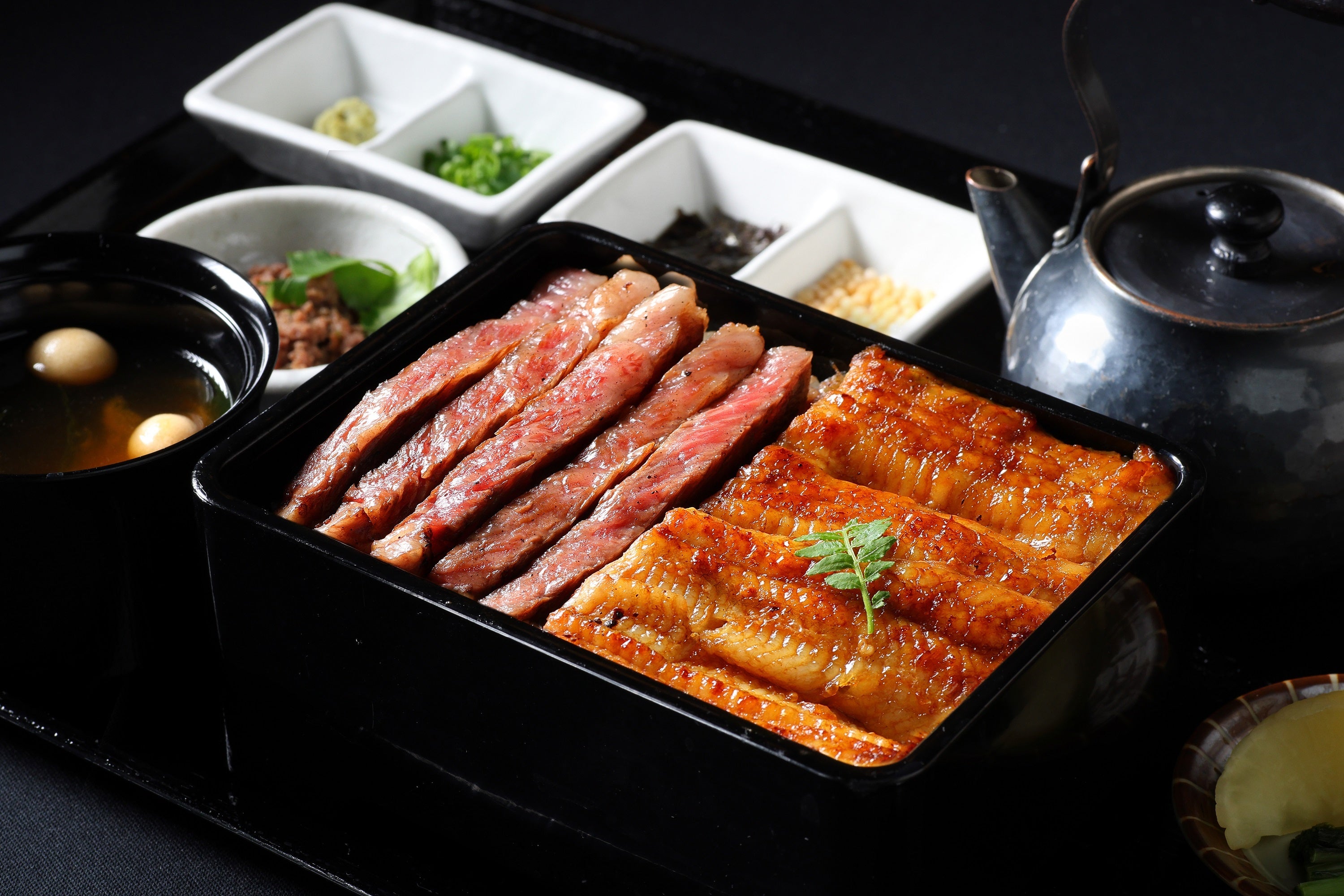 A5黒毛和牛ローストビーフと国産鰻を使った