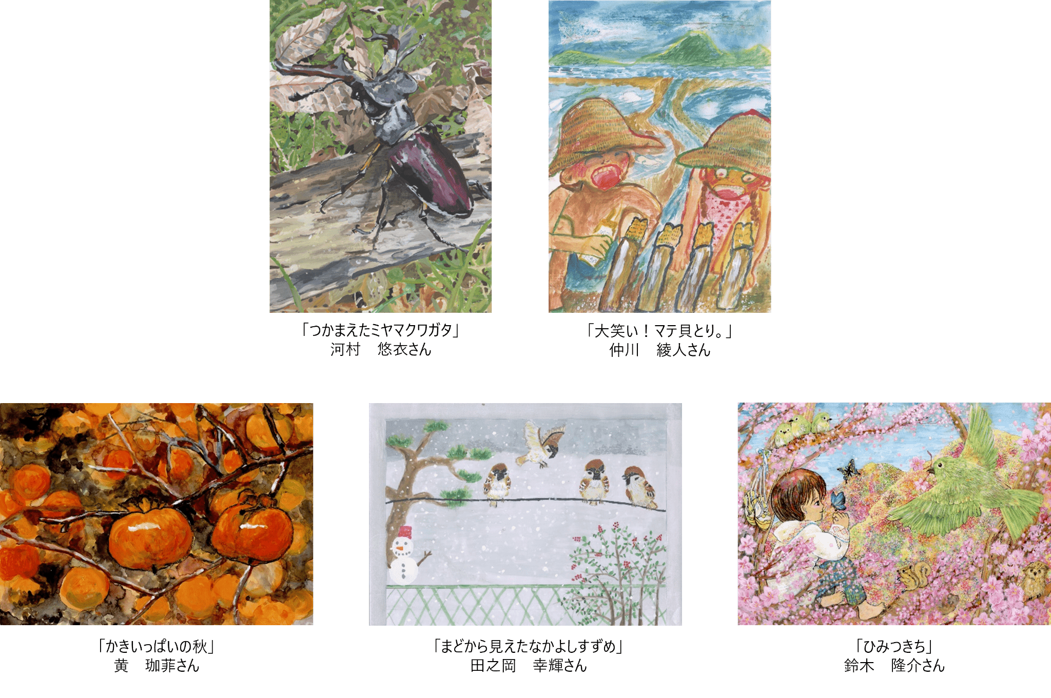 今回のテーマは「しぜんがいっぱい しあわせな くらし」で、子どもたちが日常や旅先で触れ合った自然を題材にした、自由で個性あふれる作品を募集しました。国各地から53,963点の応募を頂き、その中から公正かつ厳正な審査の結果、ブリヂストン大賞5点をはじめとする100点の入賞作品を選出し、2023年4月4日にブリヂストングローバル研修センター(東京都港区南麻布)において表彰式を行いました。表彰式では、応募作品をデザインした燃料電池自動車「MIRAI」も公開しました。