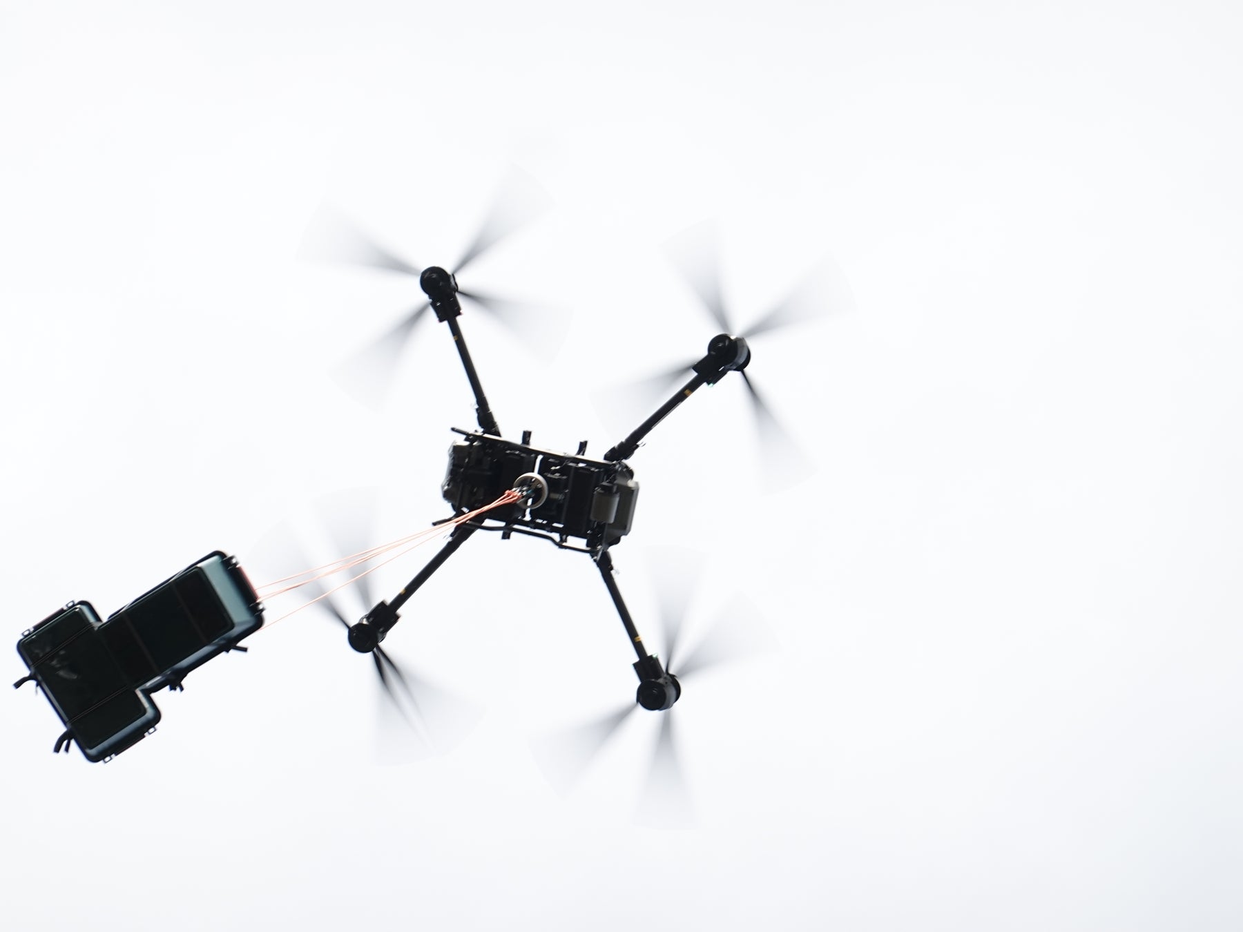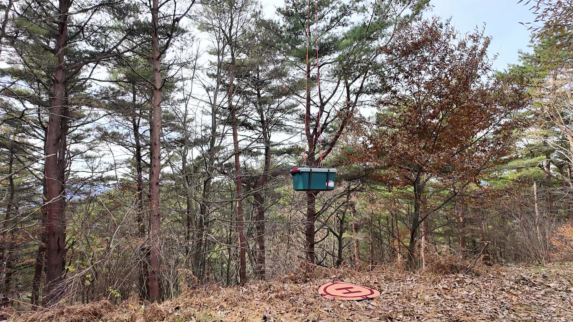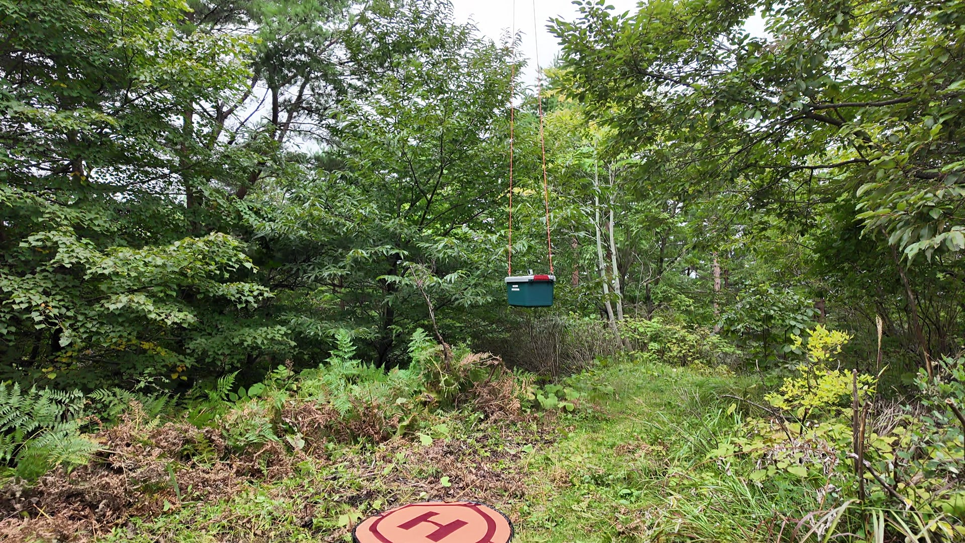 本実証試験では、ドローンにウィンチシステムを搭載し、着陸せずに物資の受け渡しを可能としました。これにより、地形や環境に左右されず、効率的な物資輸送を実現しました。