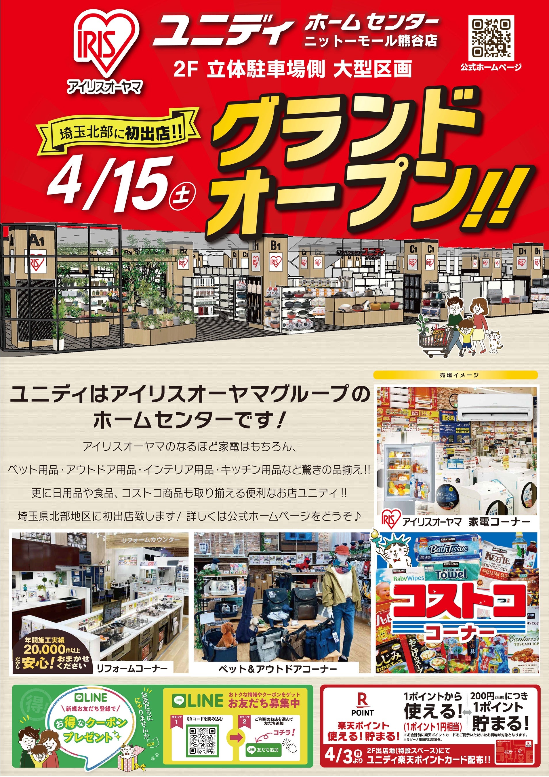 埼玉北部に初出店‼ホームセンター『ユニディ』グランドオープン!!