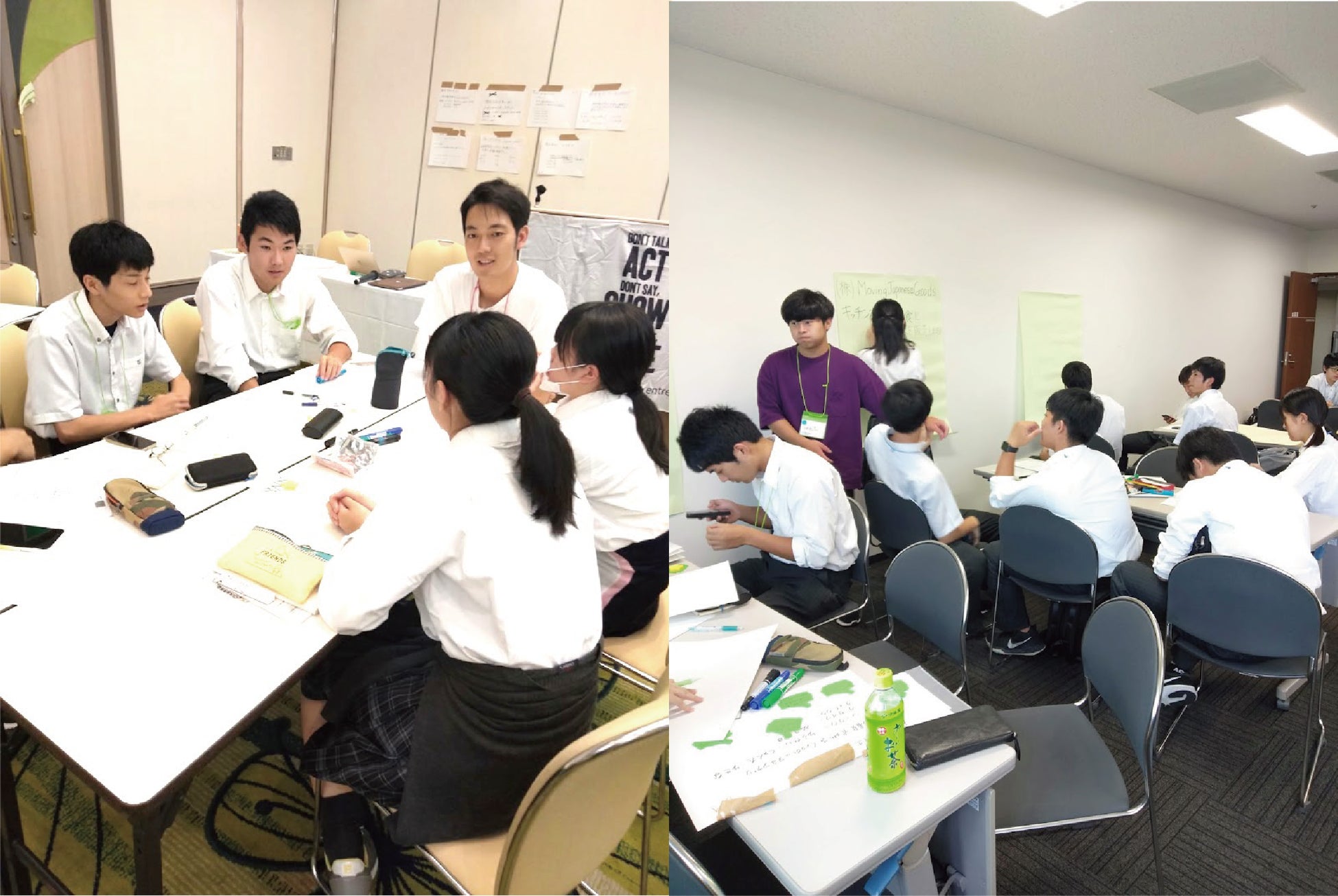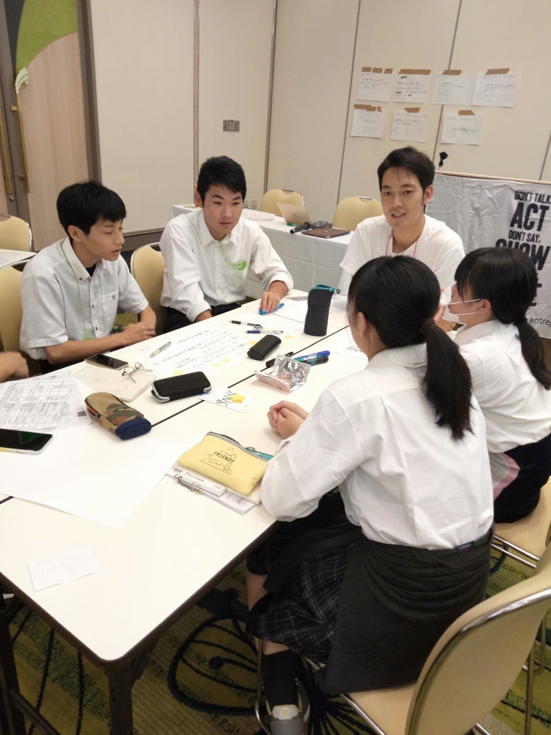 上写真)大阪の修学旅行先のホテルで、Startup BaseのOBである大学生メンターとインバウンド旅行者向けのお店・サービスを起案する高校生。このあと、高校生は訪日外国人インタビューのためにで街に飛び出していった。