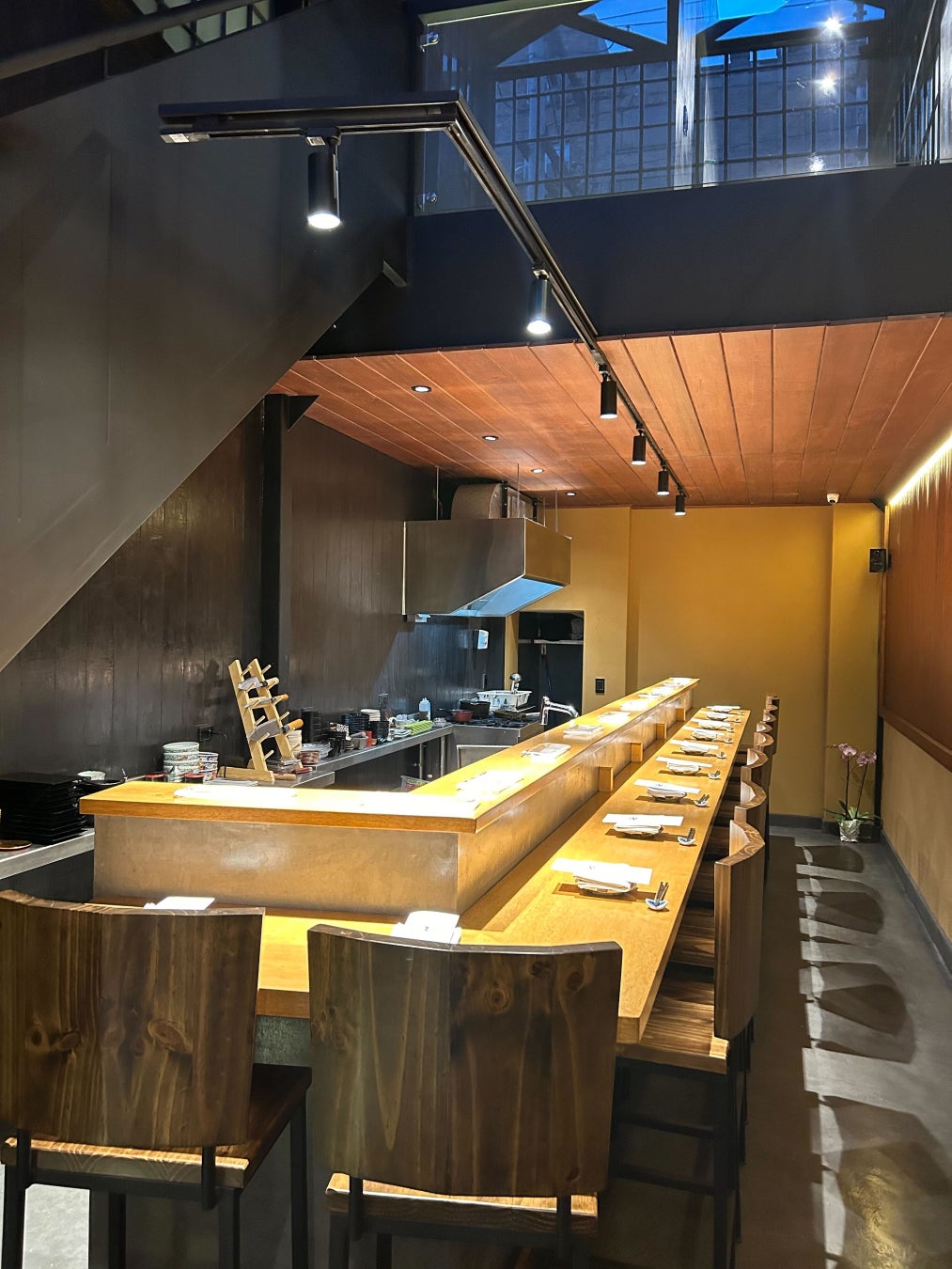 コロンビア共和国の首都ボゴタに2024年開店した「おまかせスタイル」の握り寿司を中心とした日本食レストランです。店内の高い吹き抜けを見上げたとき、自然と口角が上がる「見上げる寿司屋」をコンセプトに、本物の日本の味と共にお客様を笑顔にすることを目指しています。店内1階はカウンター11席、2階はテーブル20席程度となっています。会食や宴会の場として個室としてのご利用も承っております。