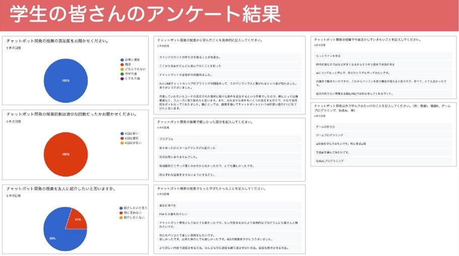 尚、生成AI活用研修では、研修内の数時間という限られた時間の中で、AIを活用して、参加者各自が決め、プログラミングした人格を持たせたチャットボットを作成します。本研修は受講先より大変好評を得ています。