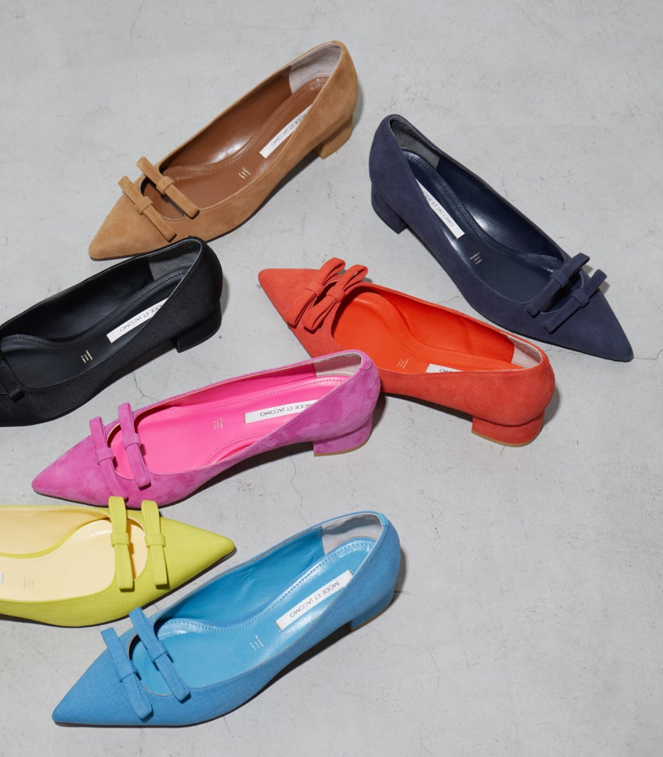 「わくわくするカラーバリエーションで、靴を選ぶ時から楽しくなるラインナップになりました。足がきれいに見えるデザインを目指し、リボンの大きさや位置、ポインテッドの形などこだわりポイントがたくさん詰まっています。履き心地も可愛さも叶えた理想のパンプスは、低反発クッションなど機能性も抜群、3.5cmの太めヒールでたくさん歩く日もスタイルアップできる靴を目指しました。」