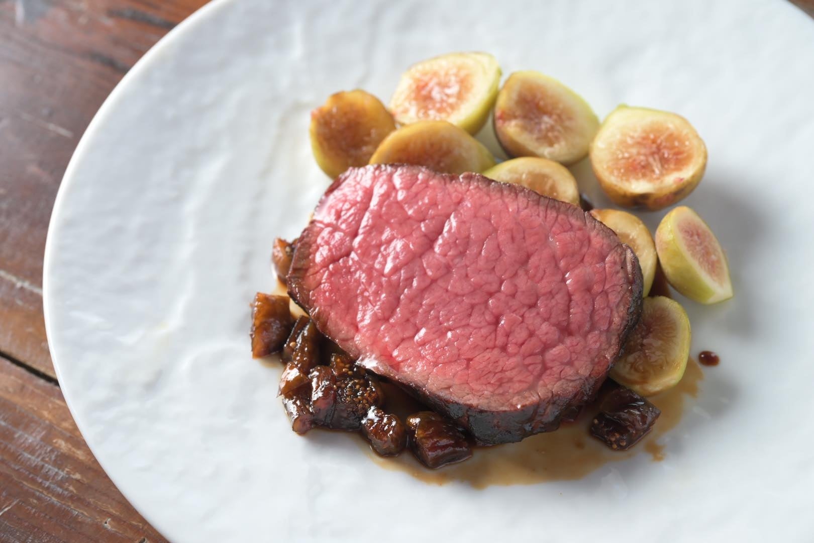 料理:常陸牛"煌"シンシン炭火焼とイチヂク添え