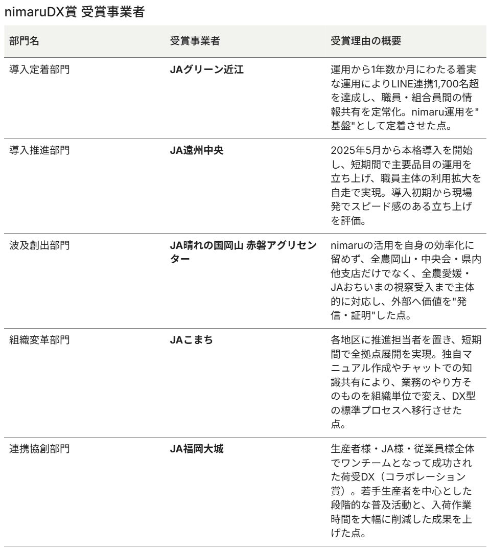 「これからの推進に活かせる内容でした。それぞれの特色やnimaruの活用の仕方があり、興味深かったです。」(県域組織・園芸推進担当、某単協組織・拠点担当課長)