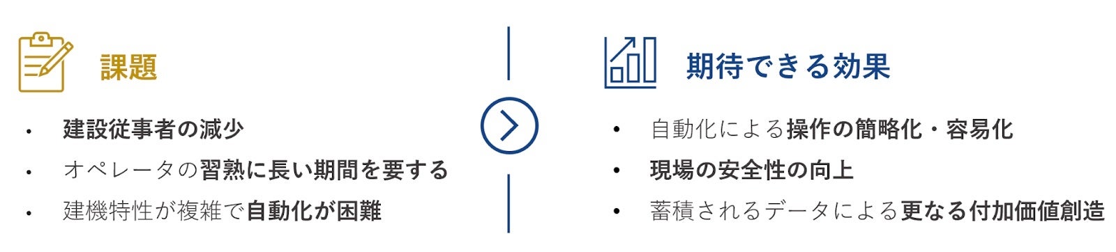 クレーンは建築や土木の現場はもちろんのこと、幅広い産業の様々な現場で揚重作業に従事する建設機械です。クレーンのオペレータは自身の目で吊り荷の位置を確認しながら、複数のレバーを同時に操作する必要があります。また、クレーンは機械のたわみや風による影響を受けるため、操作の熟練に長い期間を要します。その一方で、日本においては少子高齢化による生産年齢人口の減少に伴い、建設従事者が減少しており、クレーンを自在に操作できる熟練オペレータの減少も大きな課題となっています。