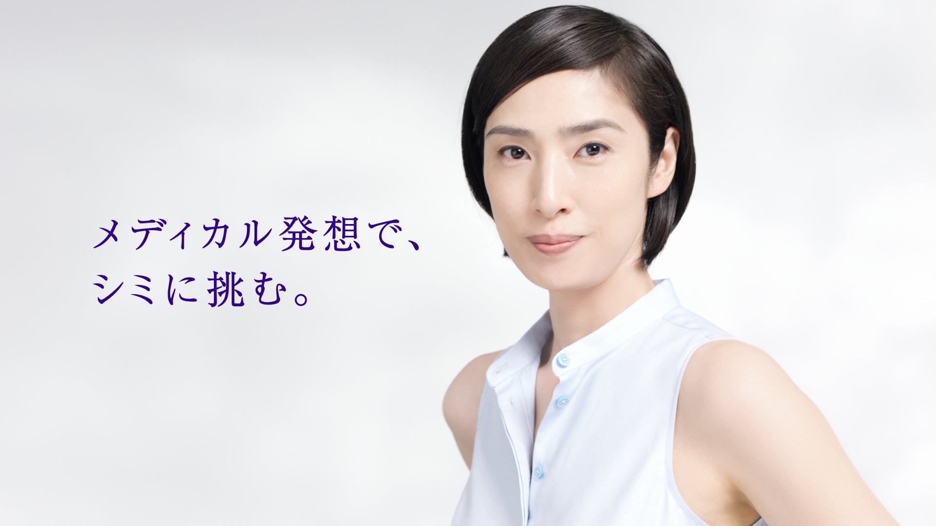 今回公開する2本のTV-CMでは、潔いシンプルな空間を使用し、天海さんの凛とした美しさをさらに際立たせました。天海さんの透き通るような美肌と、シミケアにも一切妥協しない力強いまなざしにご注目ください。