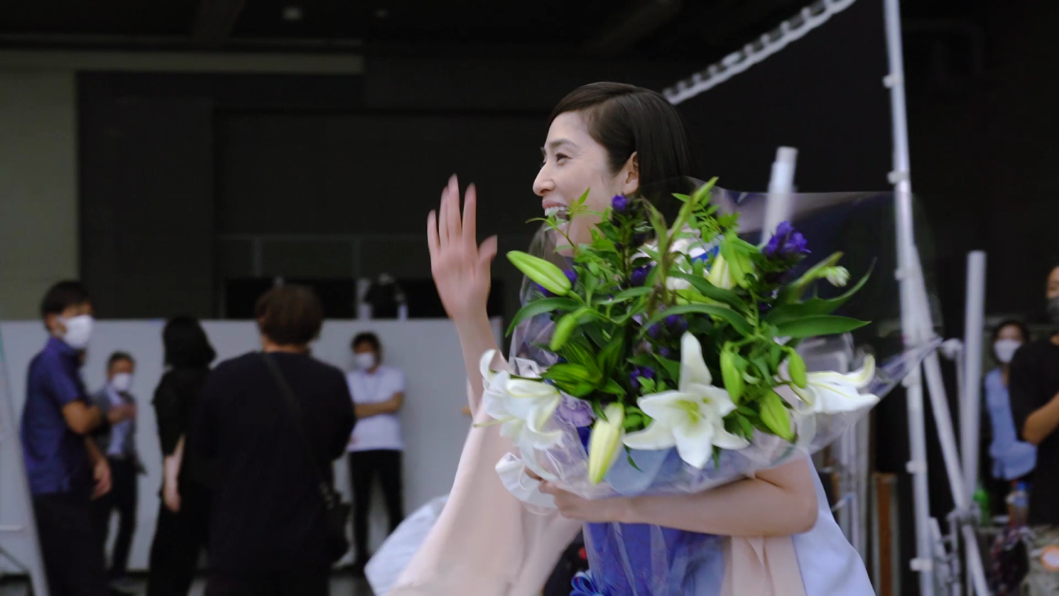 表情の作り込みからセリフの細かな言い回しまで、監督と丁寧に話し合いを重ね、一切妥協せずにベストな見え方を追求する天海さん。モニターに映る横顔の美しさに、スタジオ全体から自然と拍手が起こる場面も。