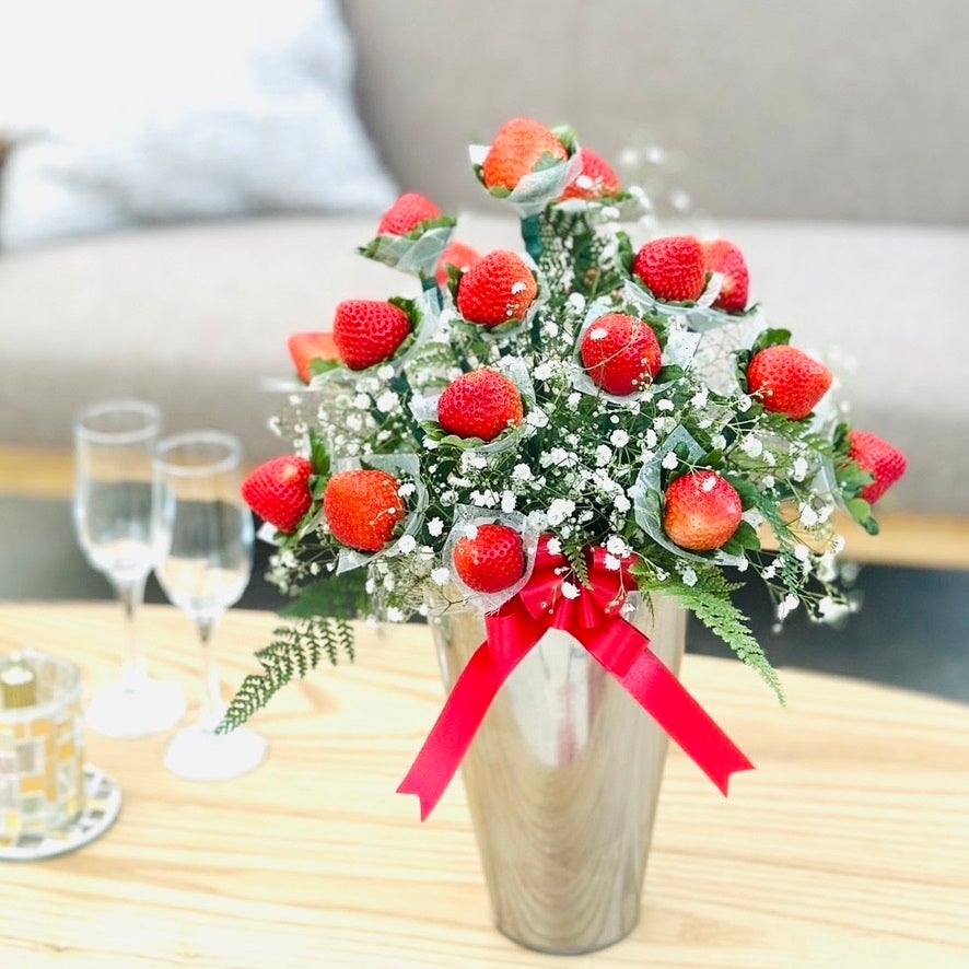 美味しいイチゴのブーケは「贈られた瞬間の『わあ!』という感動と笑顔」をテーマに、特別な日を彩るギフトとしてつくりました。