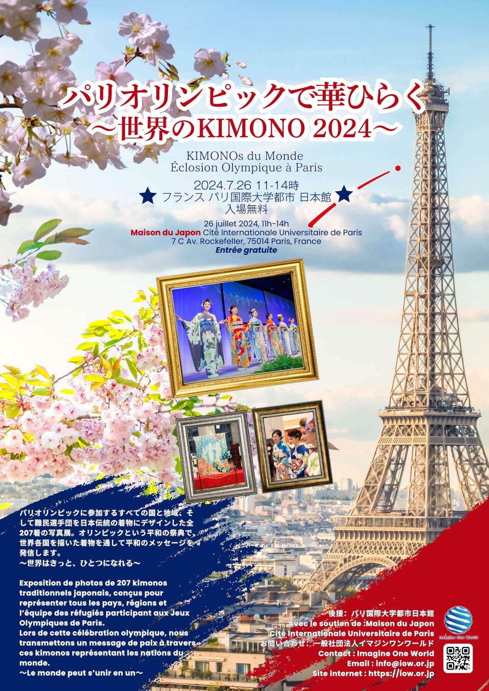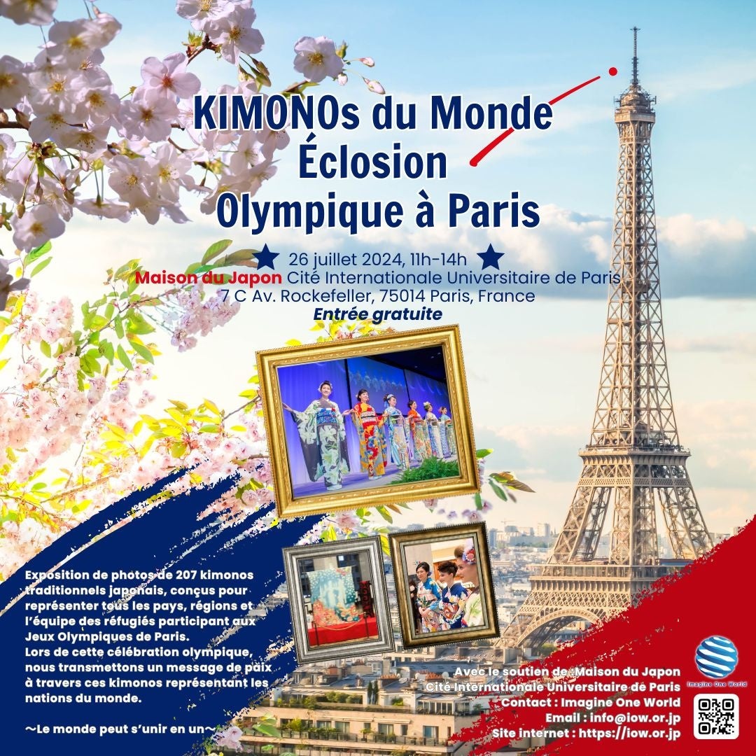 一般社団法人イマジンワンワールド(東京都渋谷区/代表理事 手嶋信道)は、PARIS2024パリオリンピックの開会式に合わせ、7月26日(現地時間)にフランスのパリ国際大学都市日本館で「パリオリンピックで華ひらく、世界のKIMONO 2024」を開催。TOKYO2020東京オリンピックのために制作された幻のKIMONOが、パリ五輪で華をひらく。