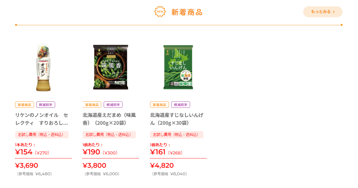 ■会員登録をするだけで、一商品につき一度だけ半額でおためし購入が可能です。