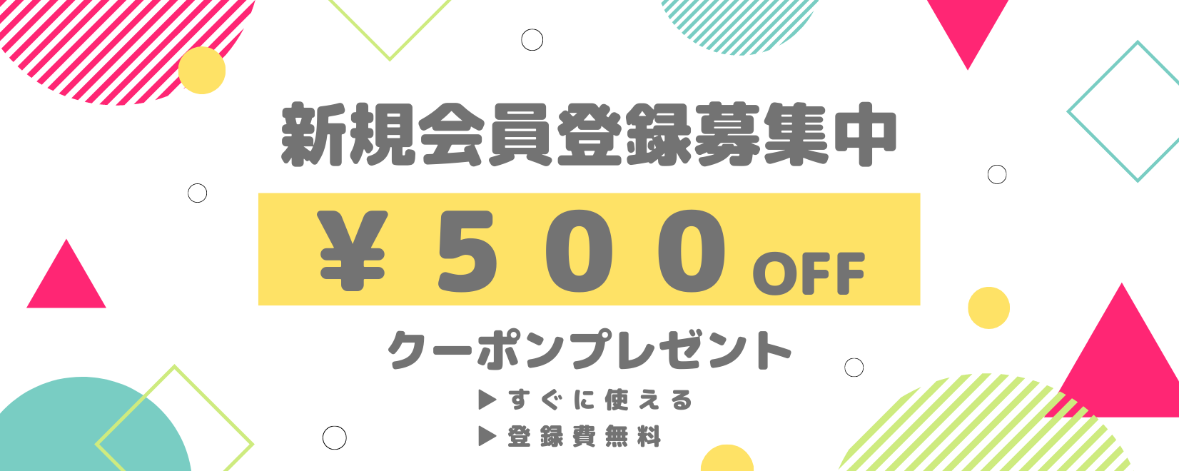 - オープンを記念して、新規会員登録をしていただいた方に \¥500オフクーポン/ をプレゼント